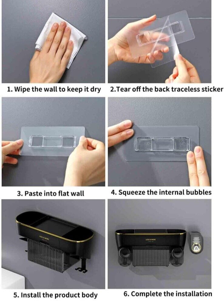 Set Includes: Toothbrush Holder, Toothpaste Dispenser, Toothpaste Holder, Sticker