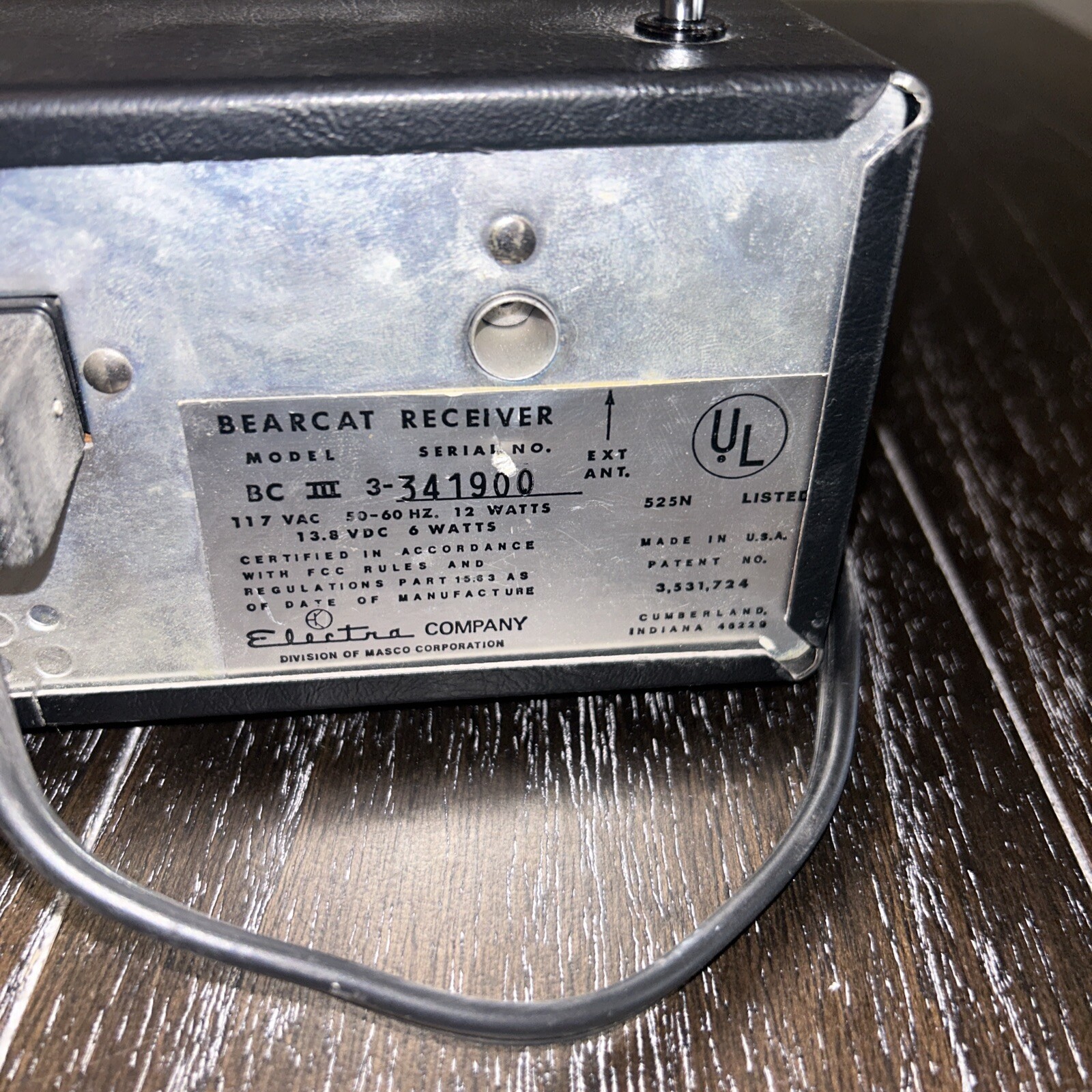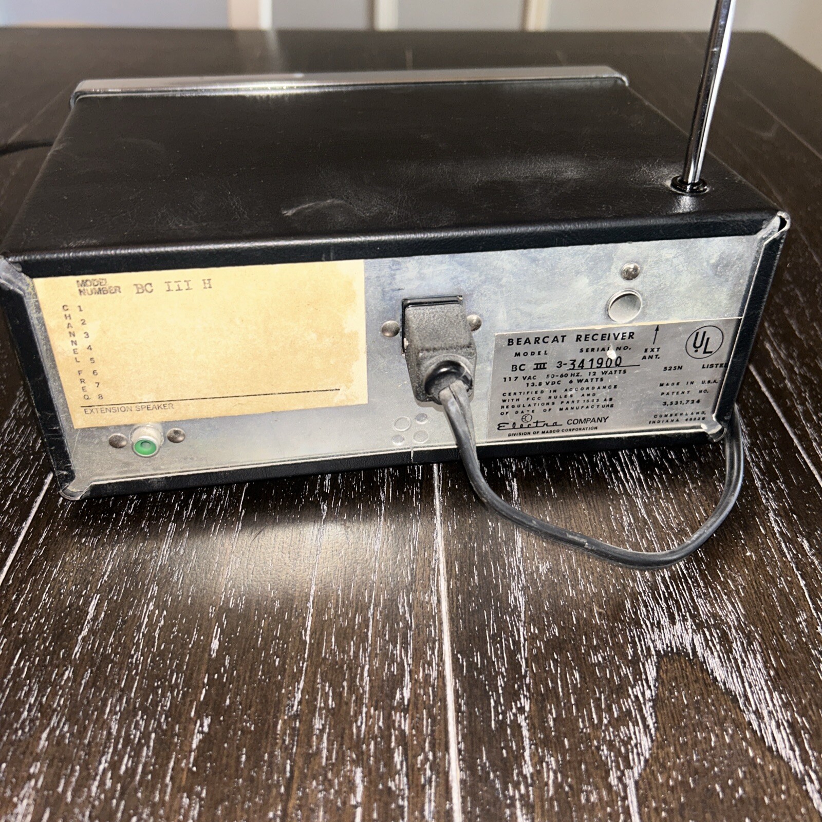 VTG Bearcat Electra Model BC III 3 L H8 Channel Radio Receiver Scanner turns on