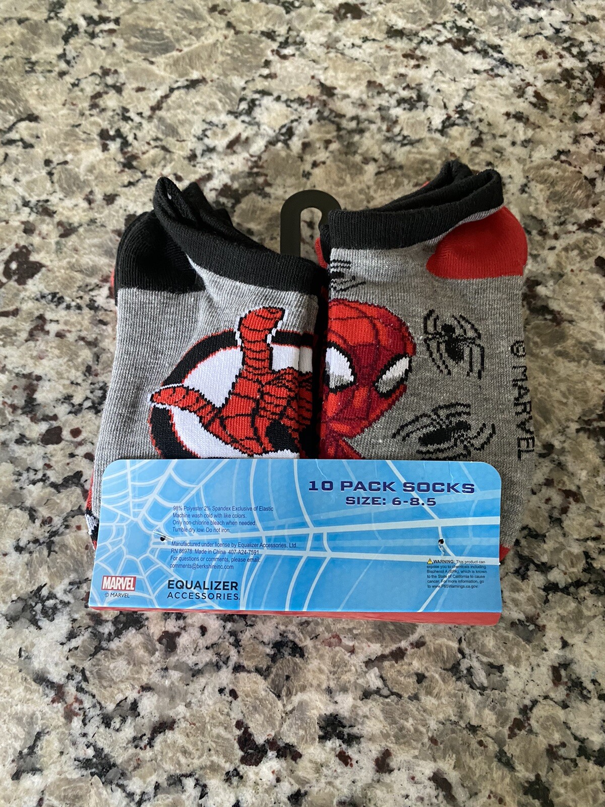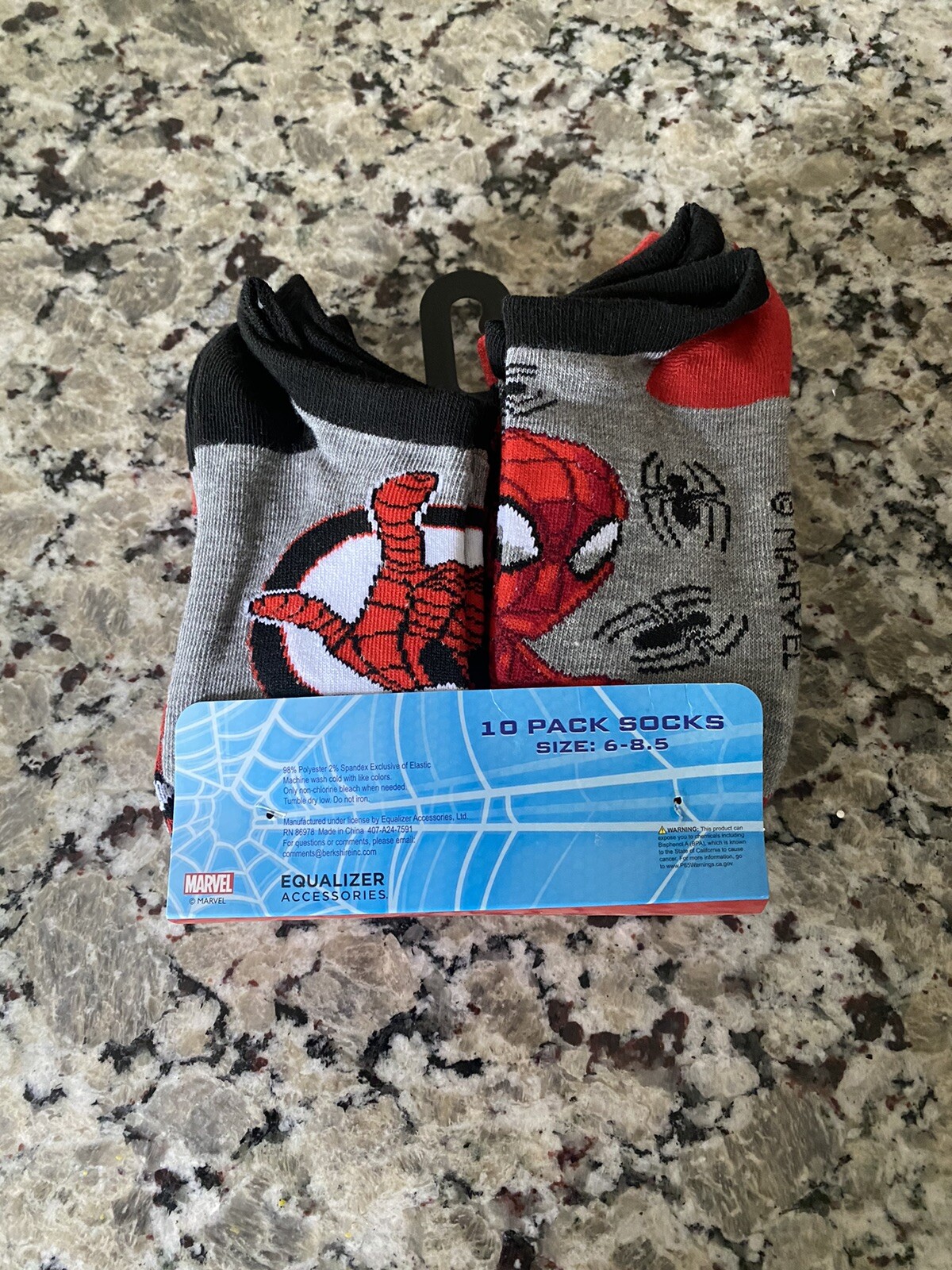 как выглядит Marvel Spider-Man Kids 10-Pack Socks Size 6-8.5 фото