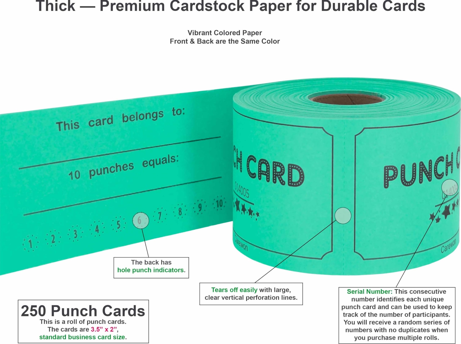 250 Punch Cards Green 8 Color Selection Incentive Loyalty Reward Cards for ...