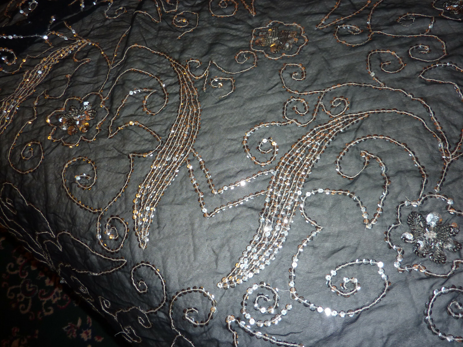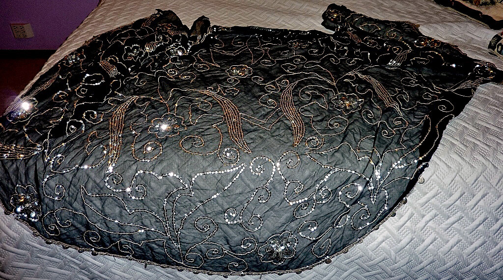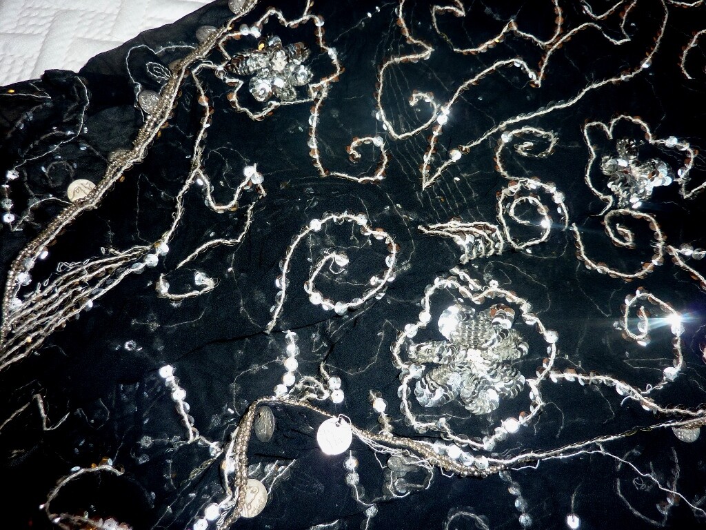 Wide,long scarf,silver,black,sequins,wrapping,belly dancing,show,gypsy,costume