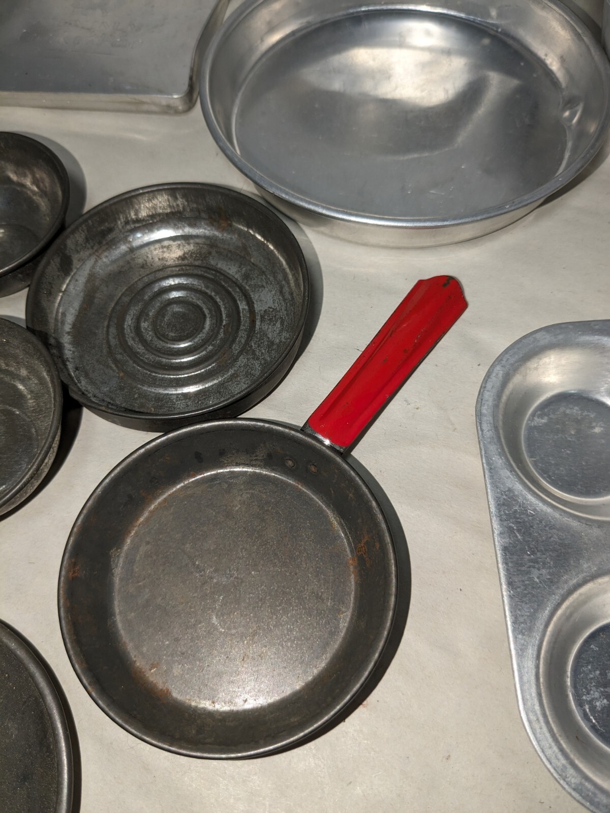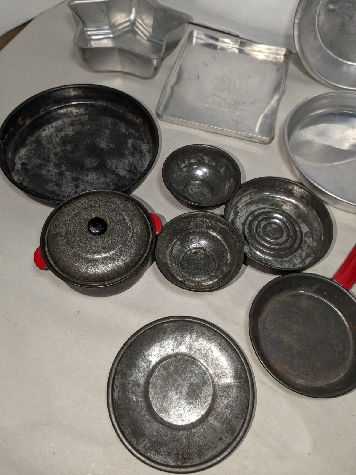 как выглядит Vintage Aluminum Childs Baking Cooking Toys фото