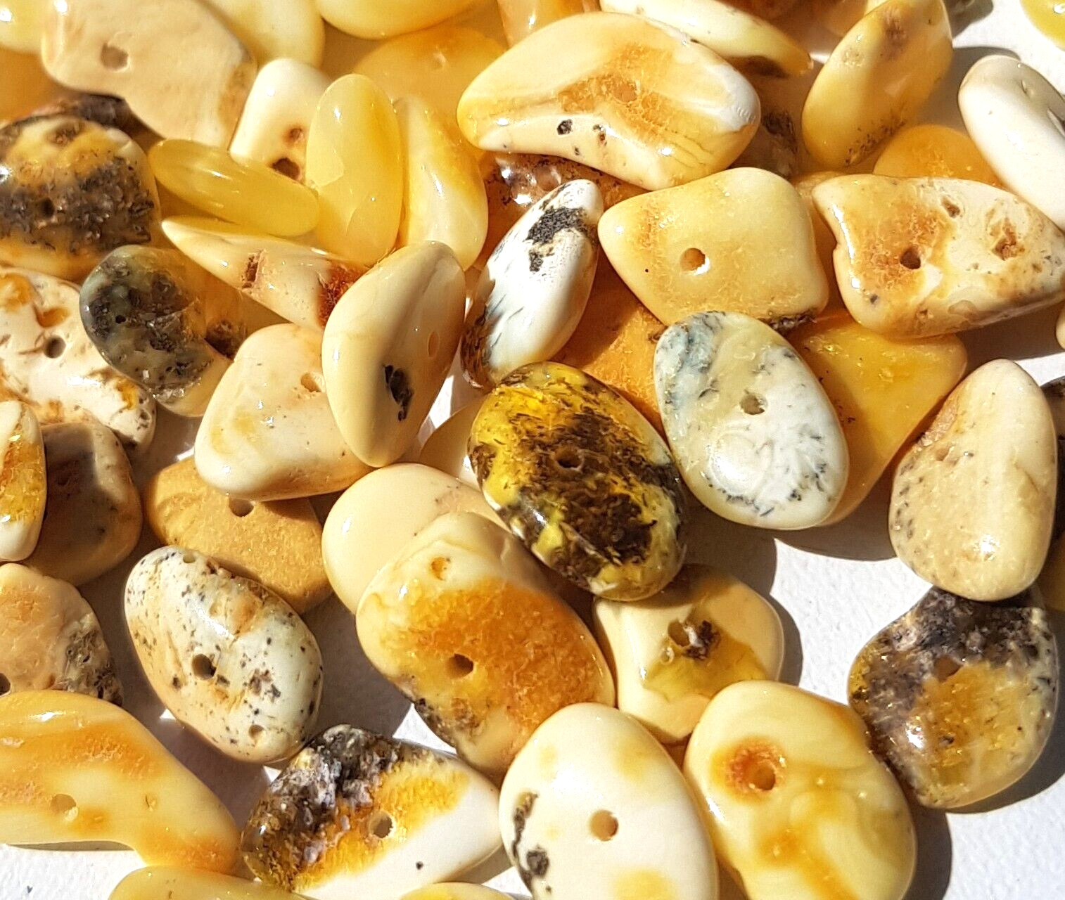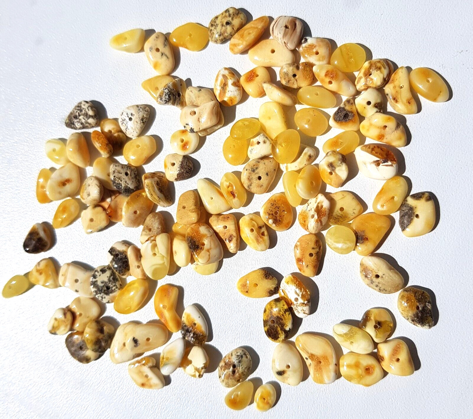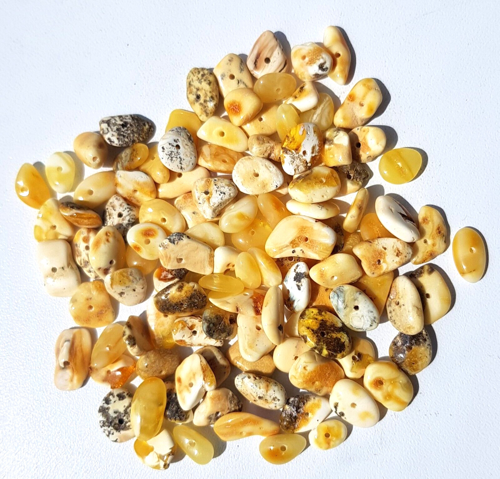 FLAT BALTIC HOLED AMBER LOOSE 7 gram BEADS egg yolk-whitening DIY