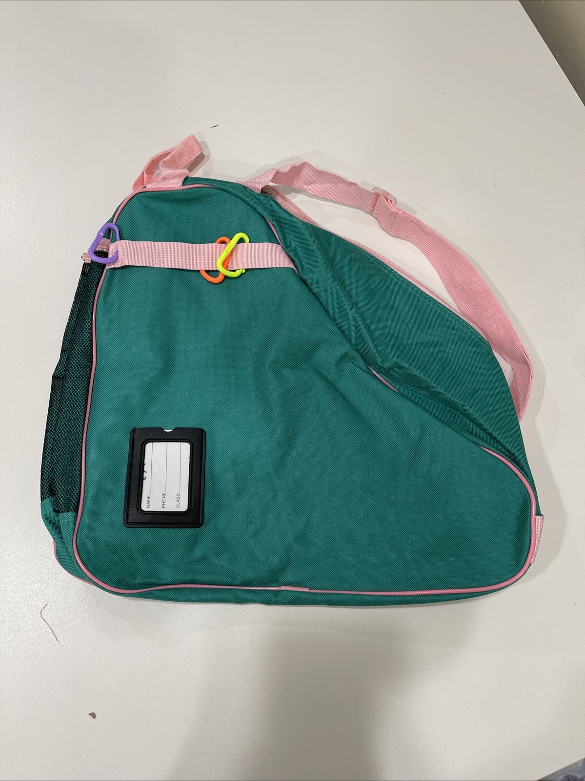 как выглядит Hexiful Skate Bag Green/Pink Carrying Ice Skates Online Skates Roller Skates фото