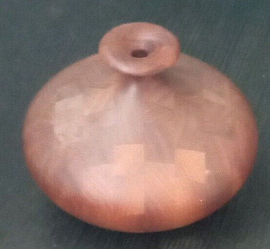 Lovely Turned Marquetry Wooden Vase 4 x 5.5