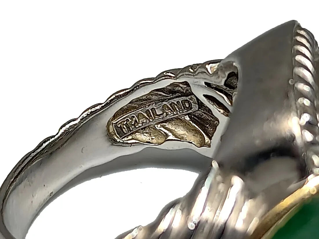 LARGE MEN'S EMERALD RING STERLING SILVER 925 THAILAND SIZE 9