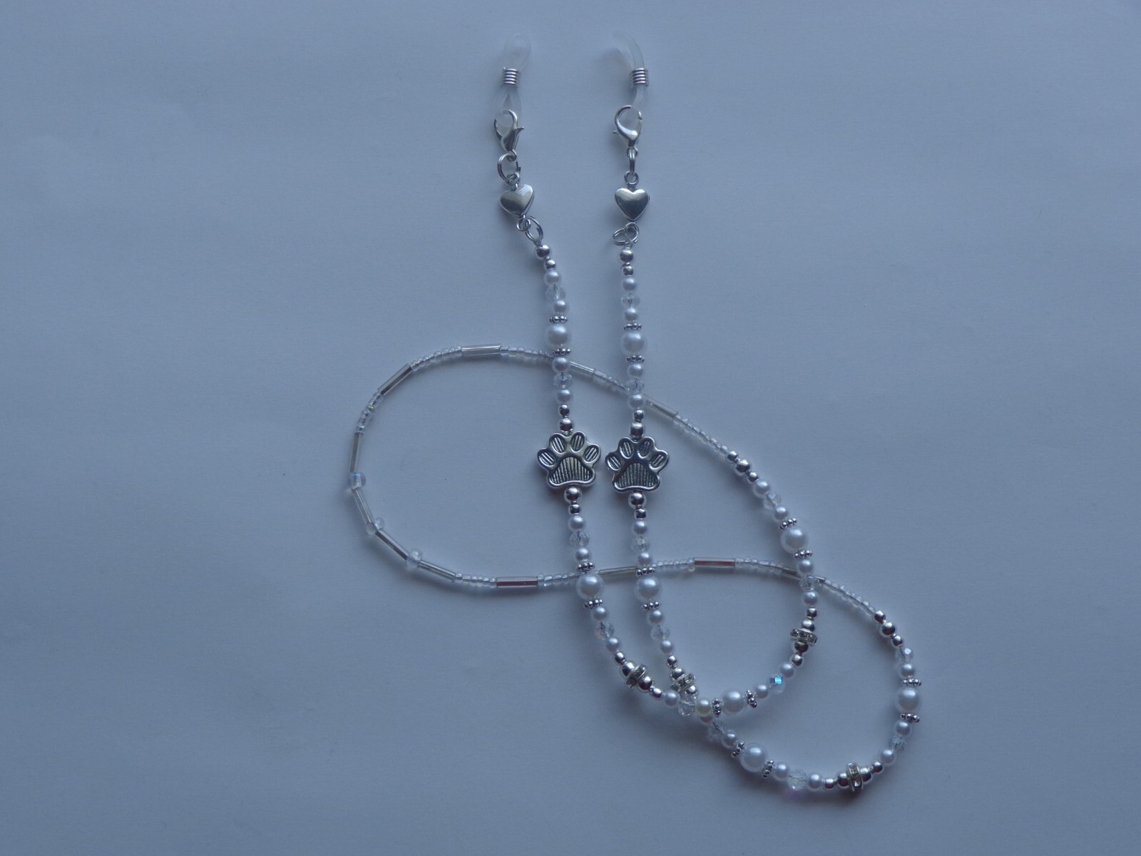PAW PRINT BEADS PEARLS EYEGLASSES HOLDER READERS CHAIN NECKLACE LOBSTER CLASPS