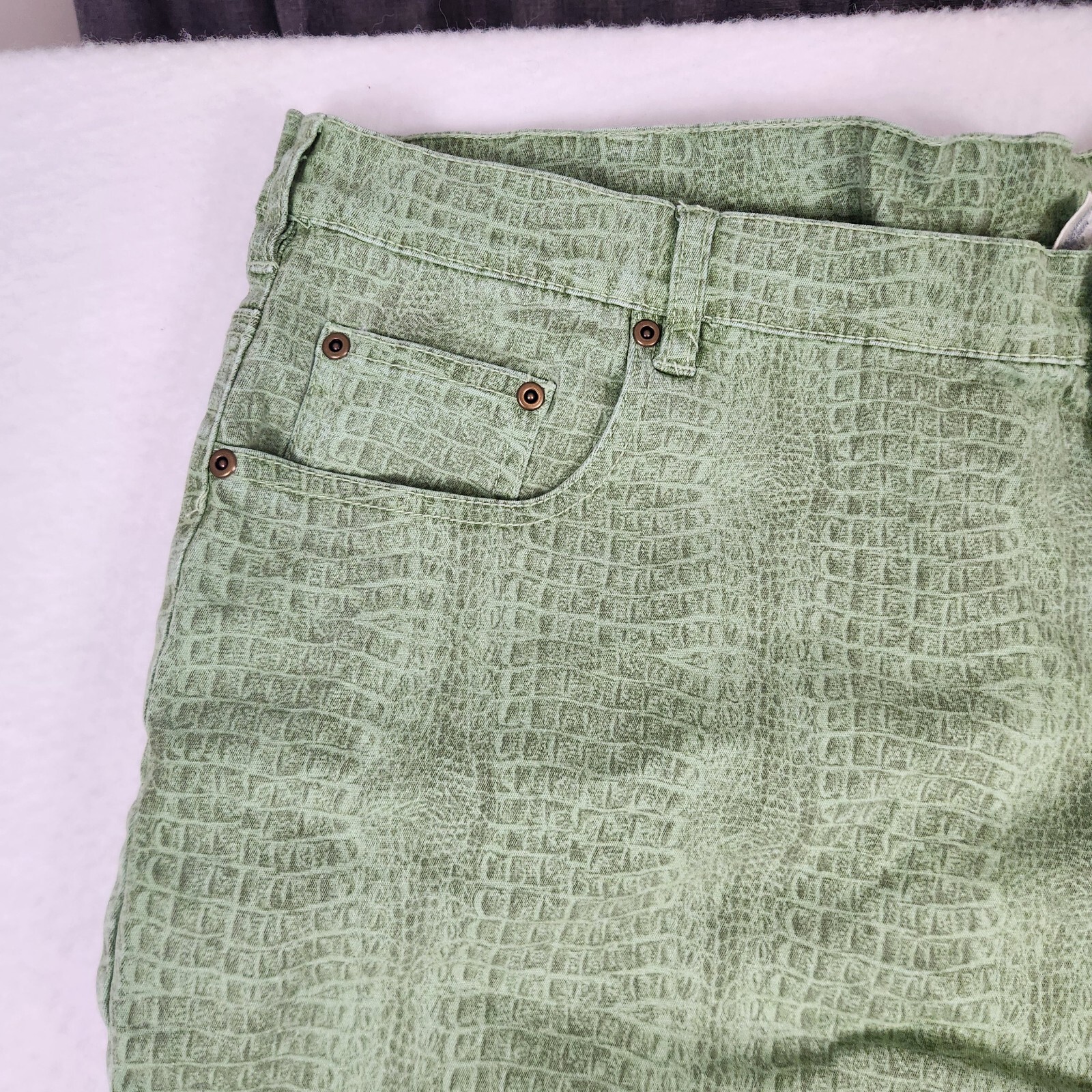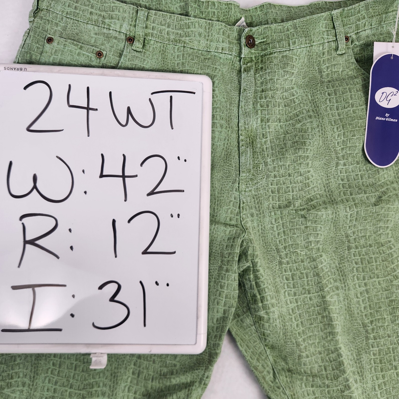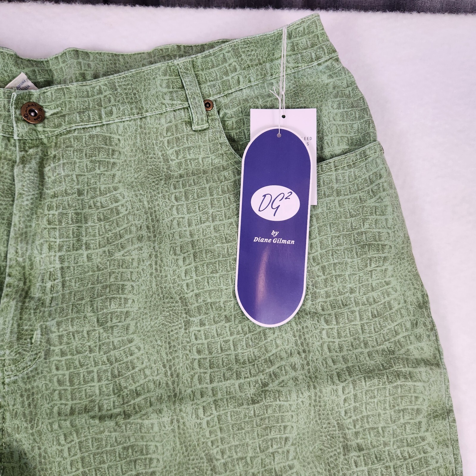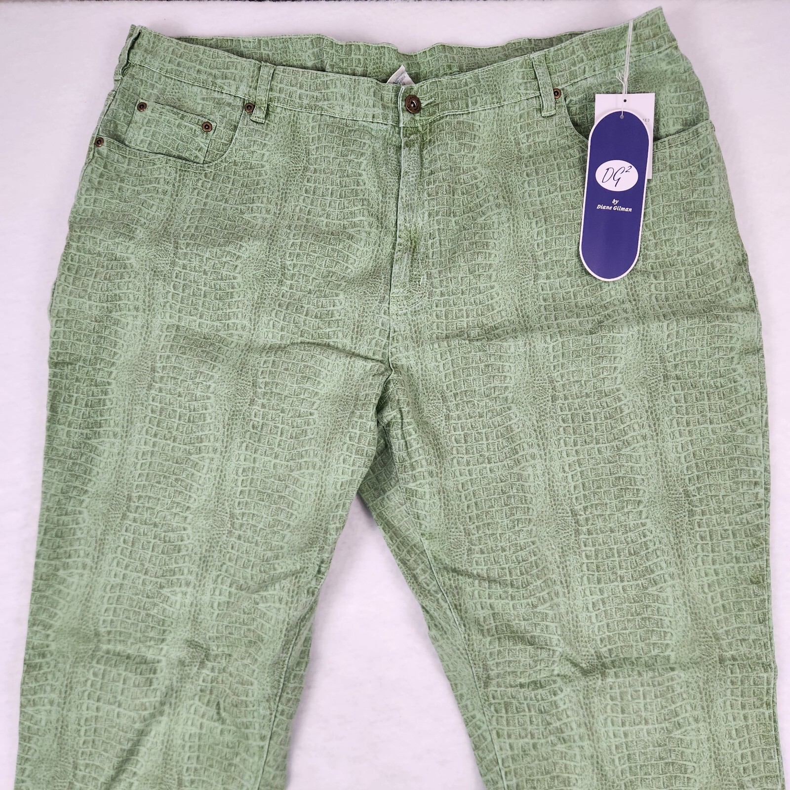 NWT - DG2 Diane Gilman Womens Stretch Green Snake Skin Print Pants Size 24WT