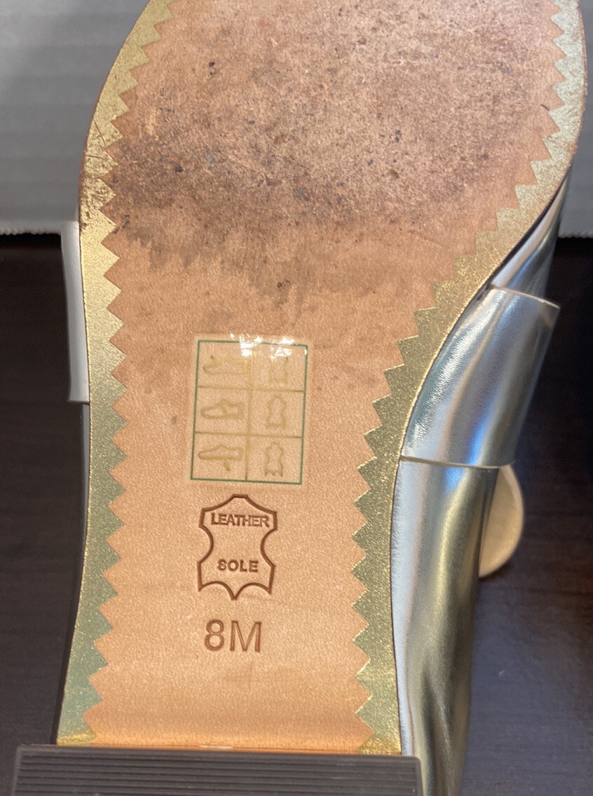 как выглядит Tory Burch Sidney Silver Metallic Leather Slides Loafers Size 8 фото