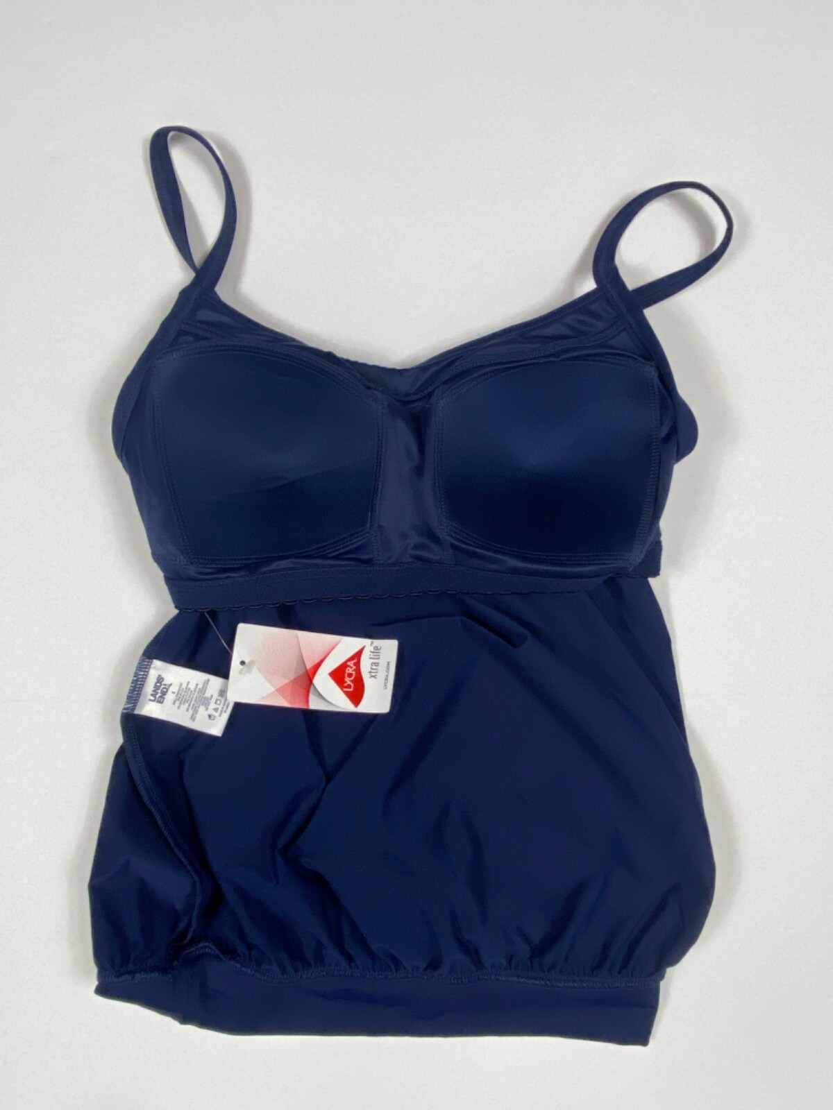 NEW Lands' End Women's Navy Blouson Tummy Hiding Tankini Top Swimsuit Size 2