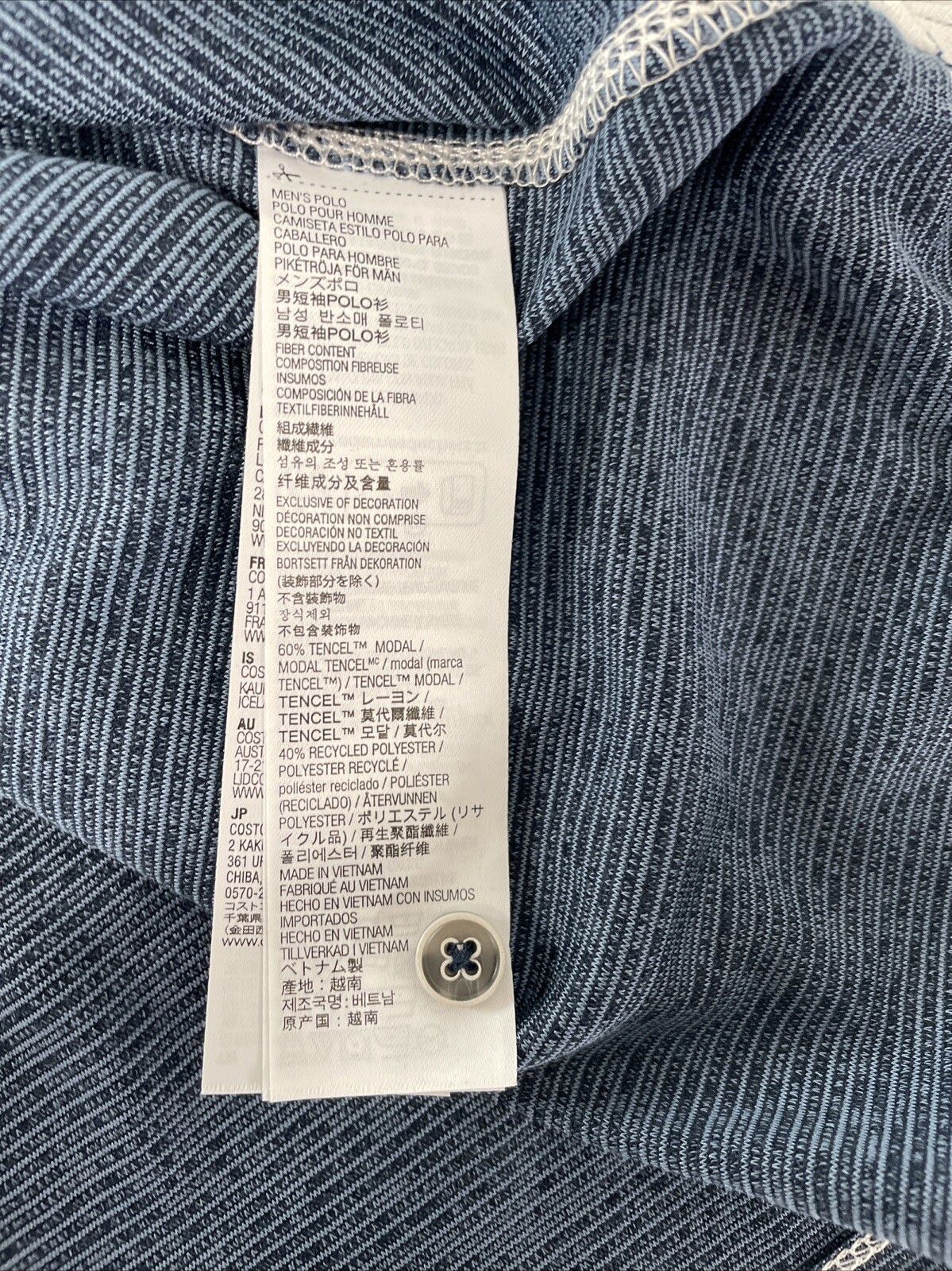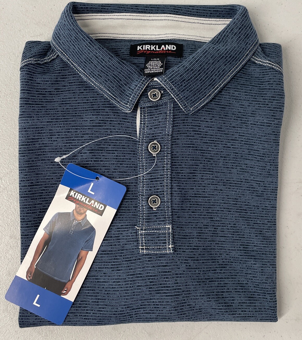 Kirkland Signature Men's Performance Polo Shirt BLUE Striped LARGE Modal Blend