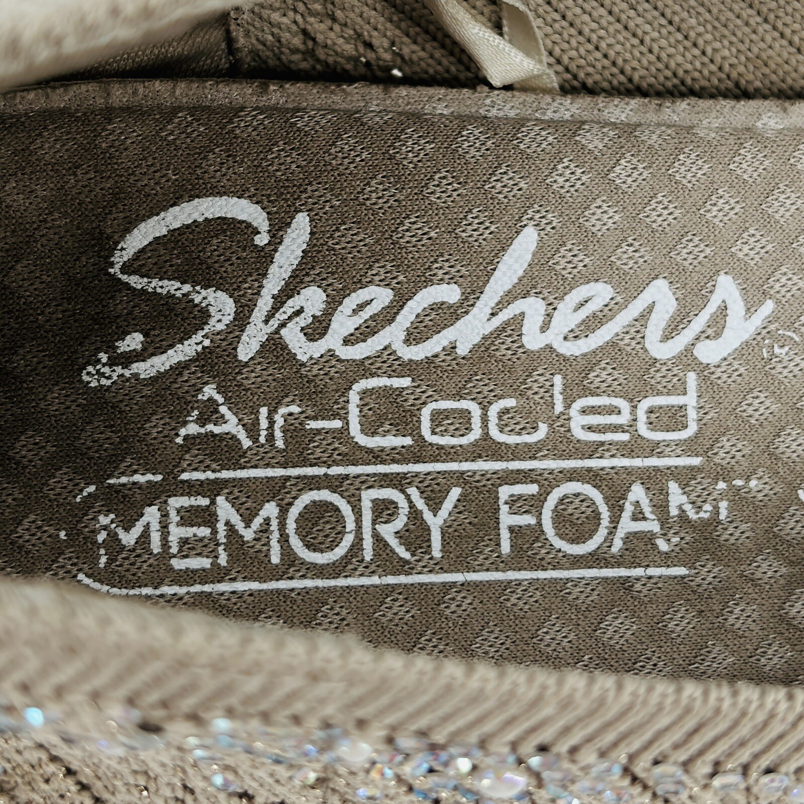 как выглядит Womens 6 Skechers Cleo 2.0 Glitzy Daze Flat 158765-TPE Taupe Fabric Synthetic фото