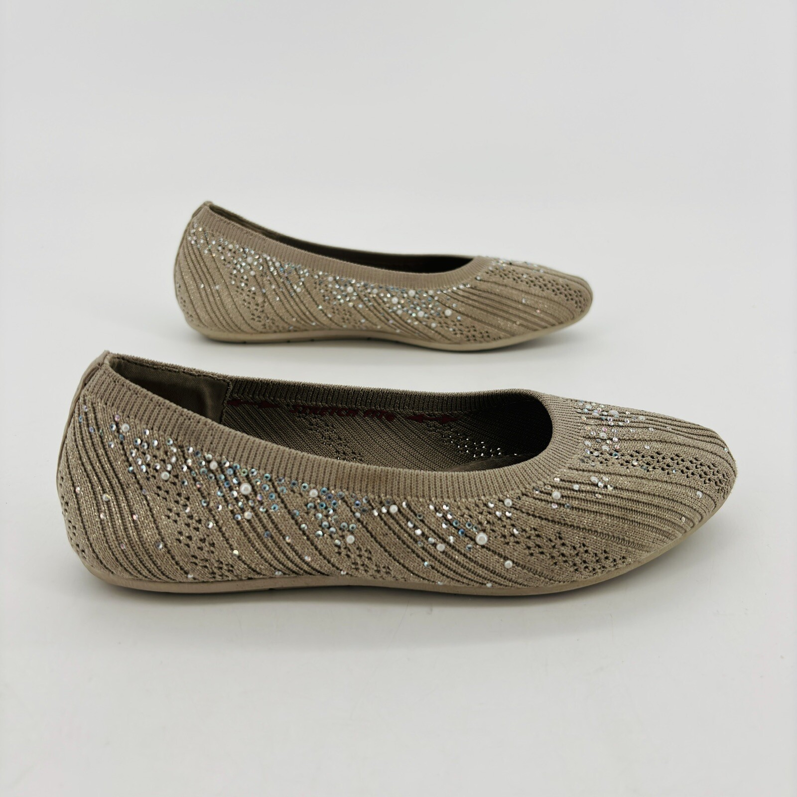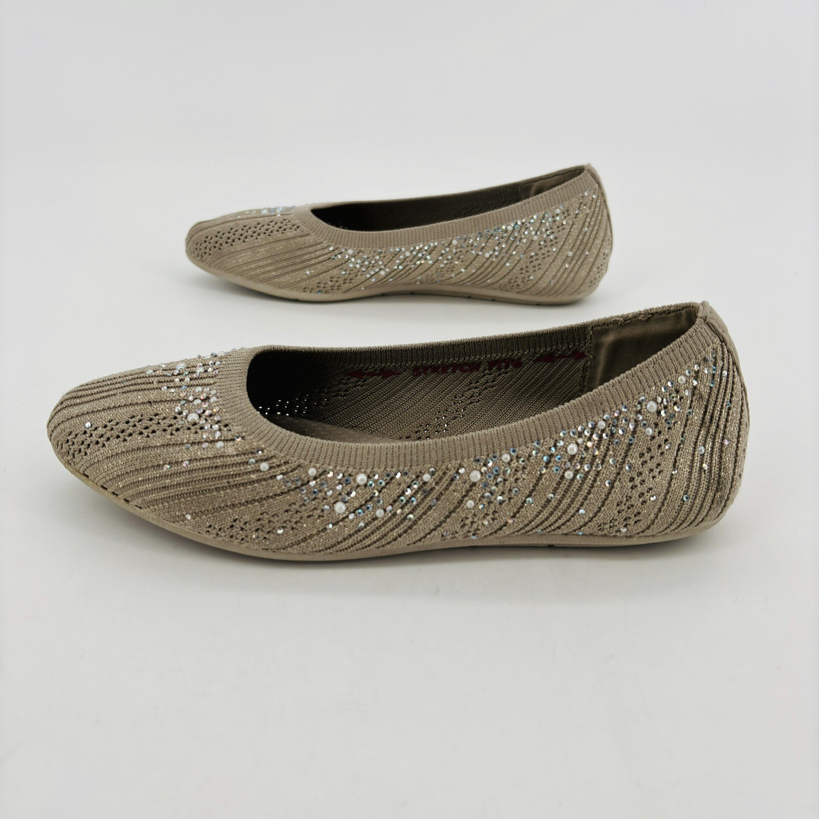 Women's 6 Skechers Cleo 2.0 Glitzy Daze Flat 158765-TPE Taupe Fabric Synthetic