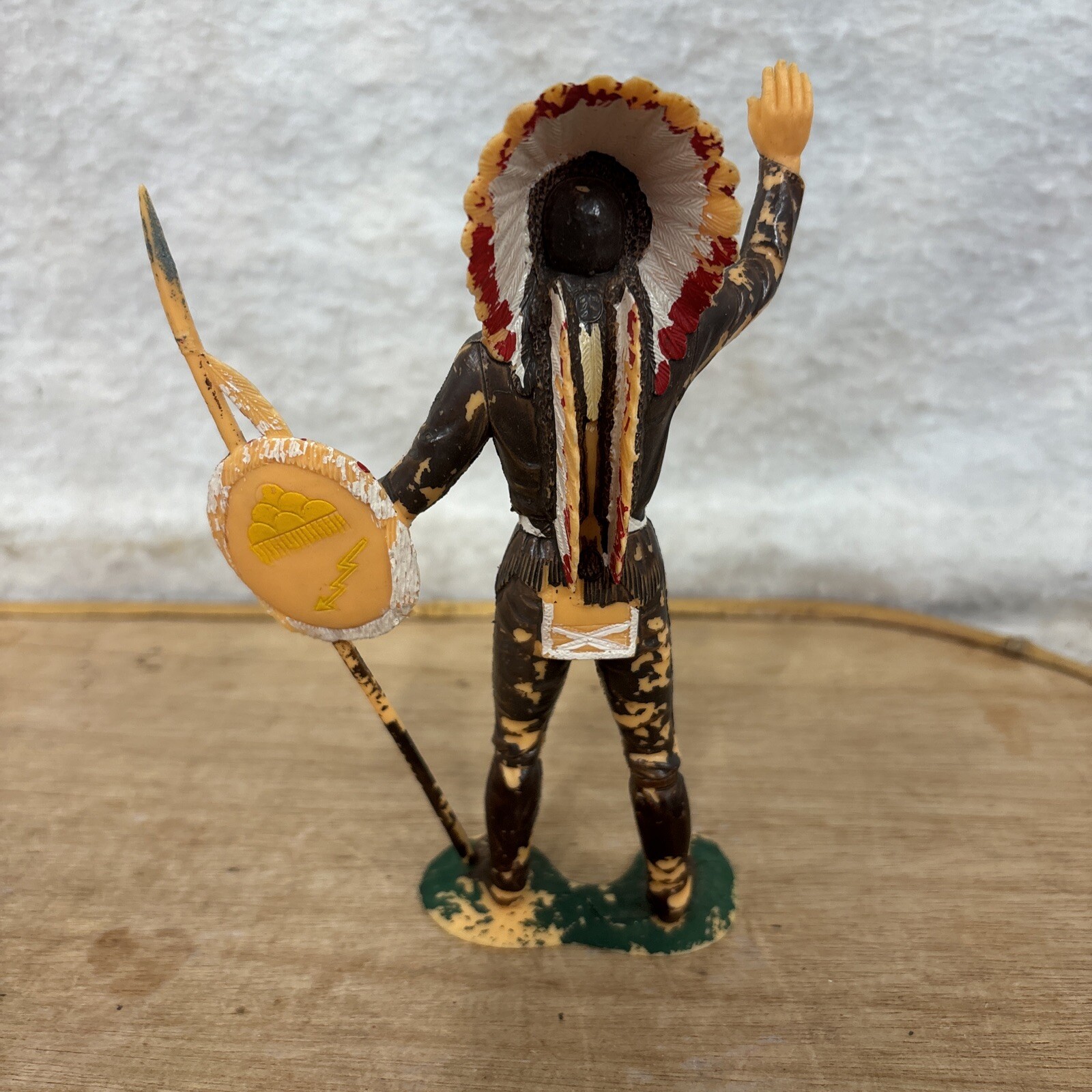 как выглядит Vintage 1964 Louis Marx Indian Chief W/Spear Shield 6" Plastic Figures фото