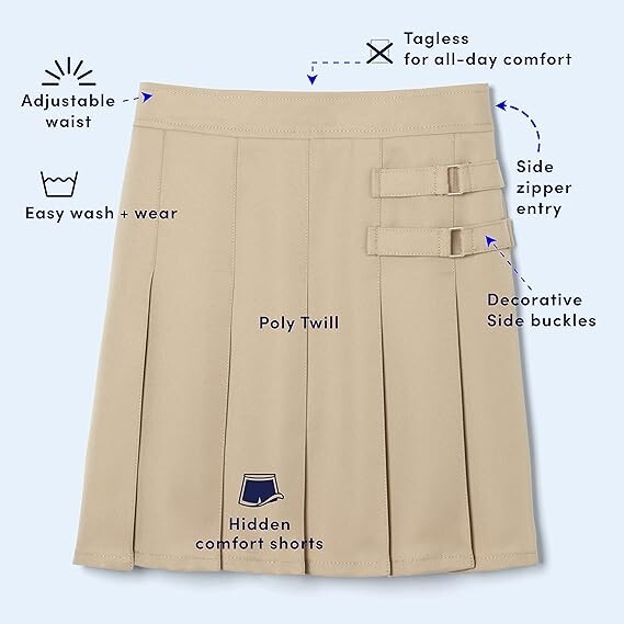 как выглядит Girls Size 5 French Toast Adjustable Waist Khaki Pleated Skirt фото