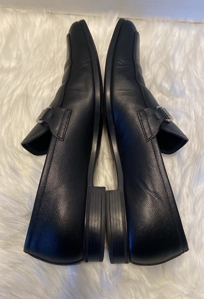 PRADA 2DC135 Black Saffiano Leather Lettering Logo Bit Loafers UK 7 - US 8