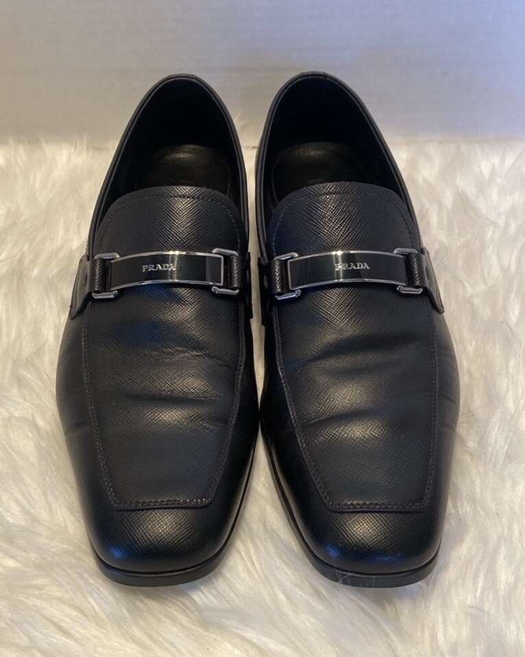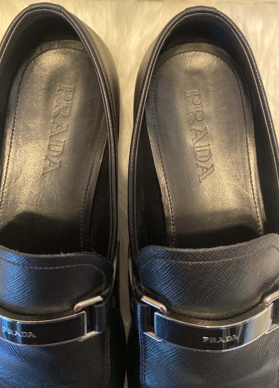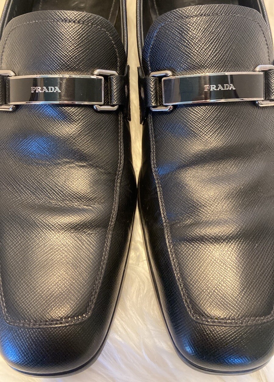 как выглядит PRADA 2DC135 Black Saffiano Leather Lettering Logo Bit Loafers UK 7 - US 8 фото