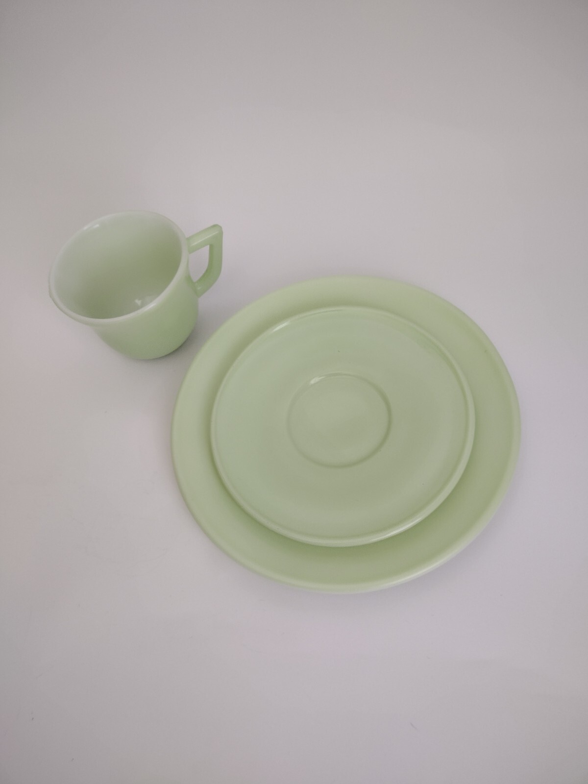 Hazel Atlas Little Hostess Pastel Green Set, tea cup, saucer, plate