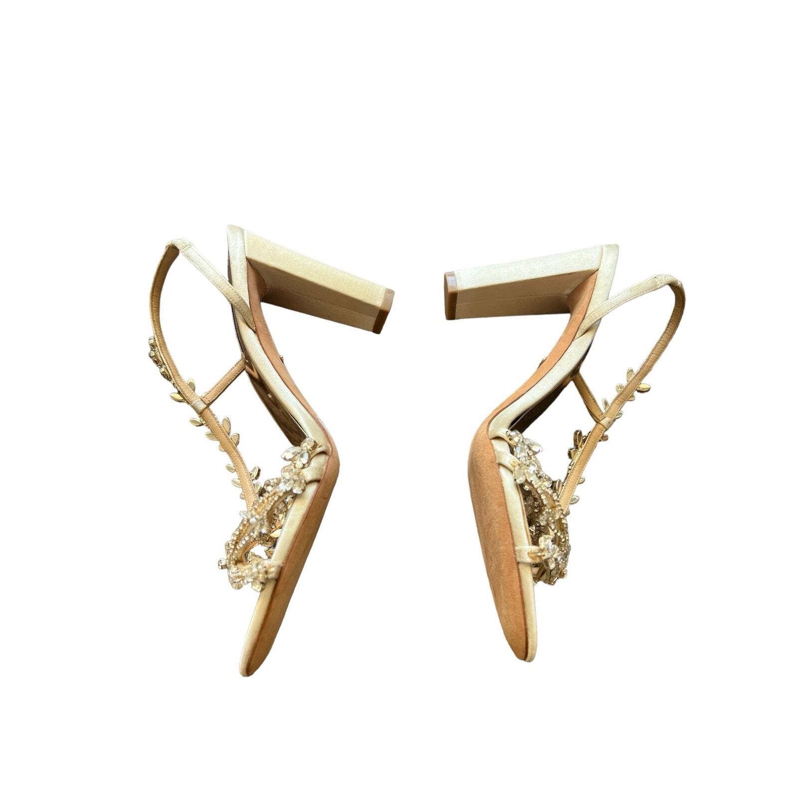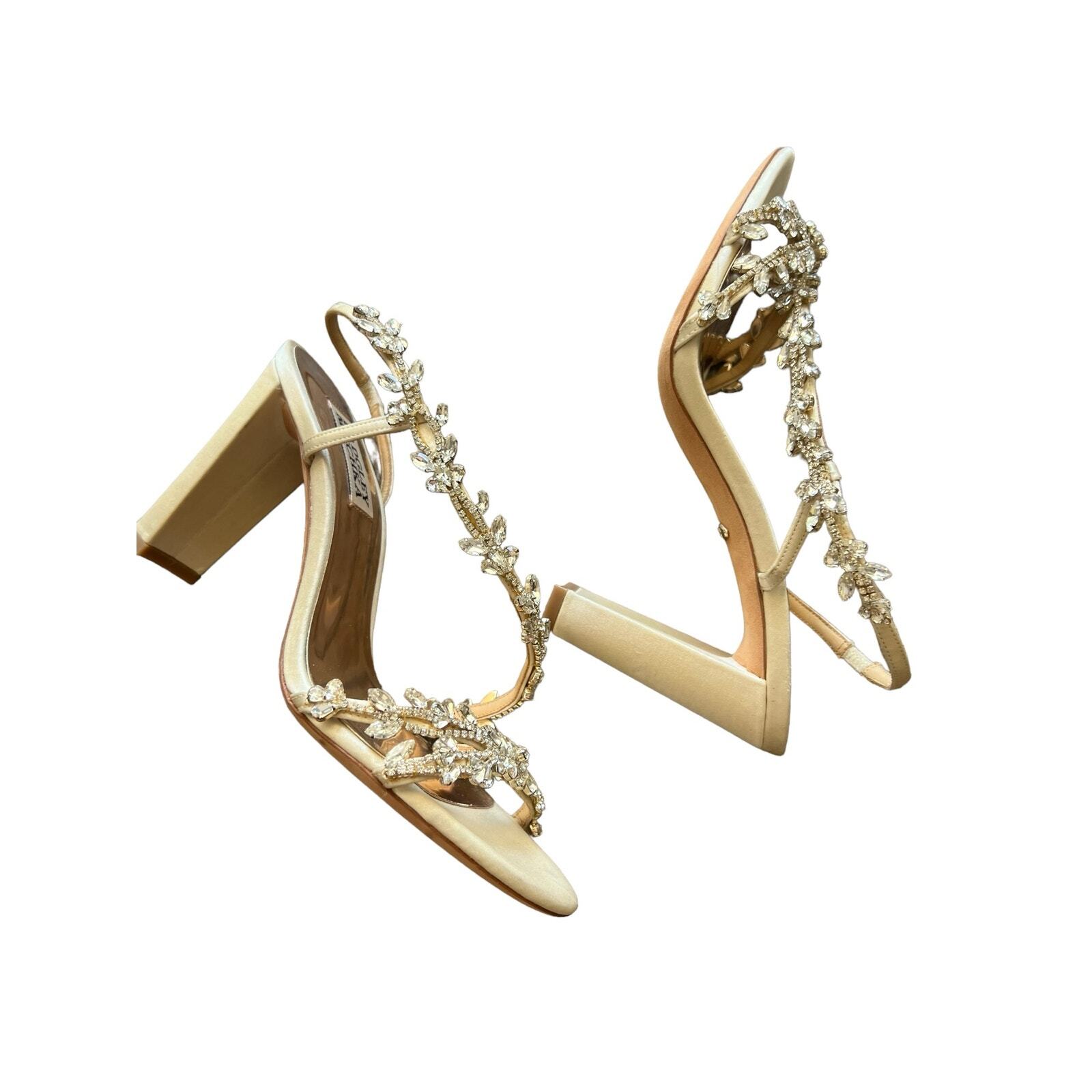 Badgley Mischka Women's Felda Heeled Sandal Wrap Around Buckle Rhinestone 6.5