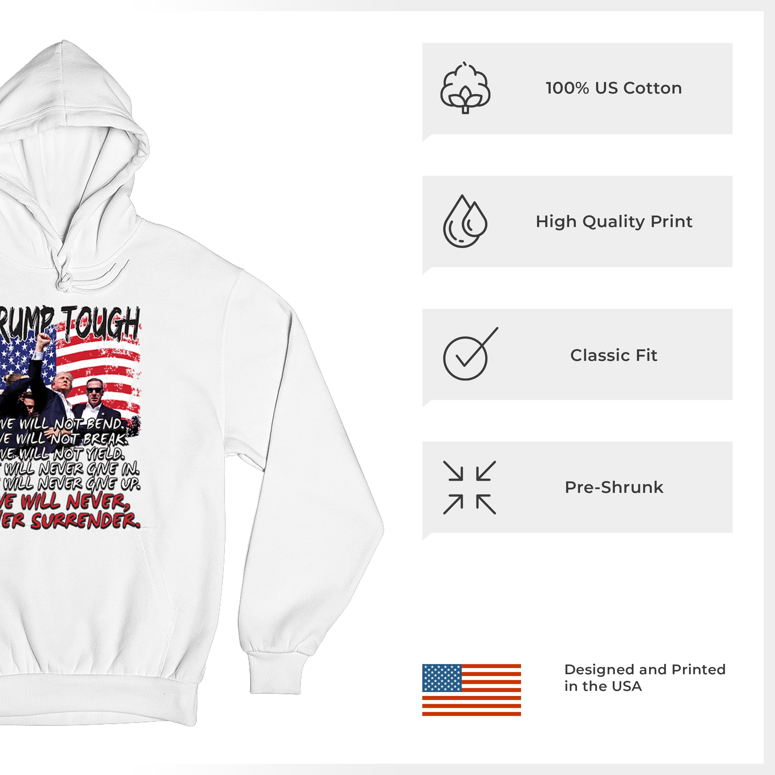 Trump Tough Never Surrender Sweatshirt 24 President Take America Back Hoodie
