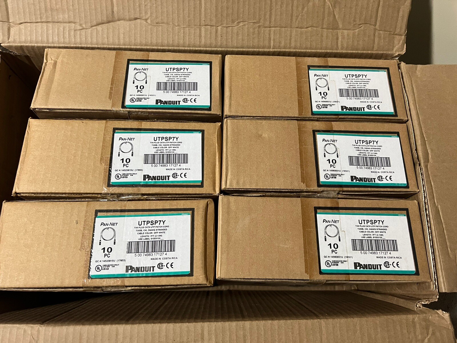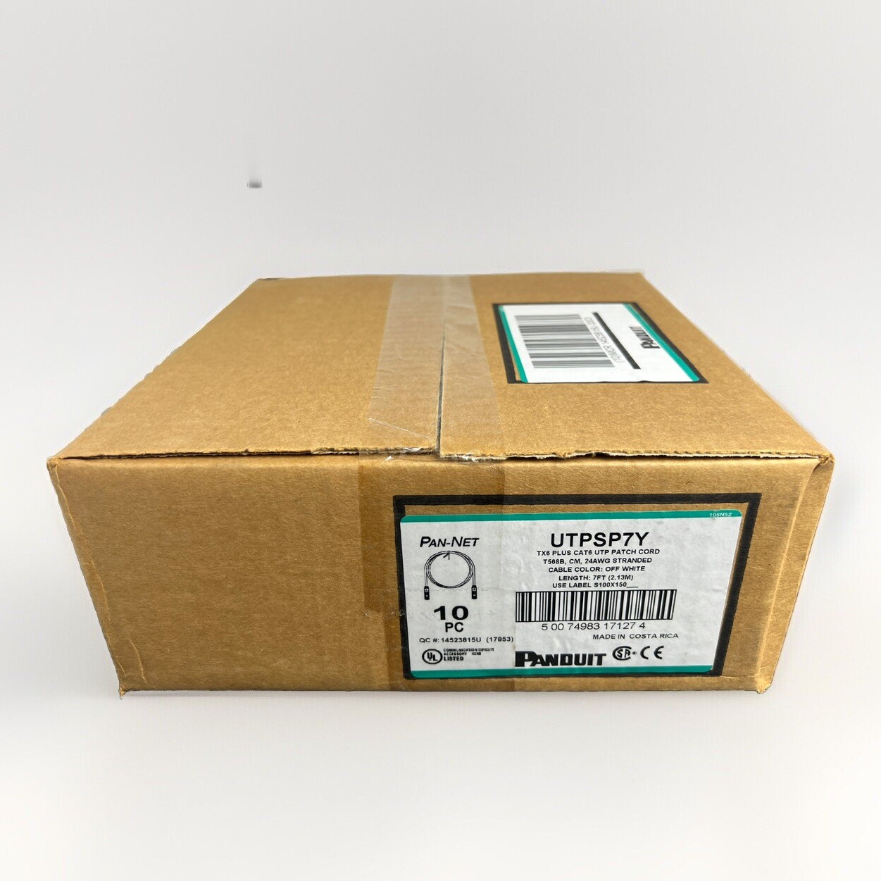 1 Box of 10 PANDUIT UTPSP7Y Cat 6 24 AWG UTP Copper Patch Cord, 7 ft, Off-White