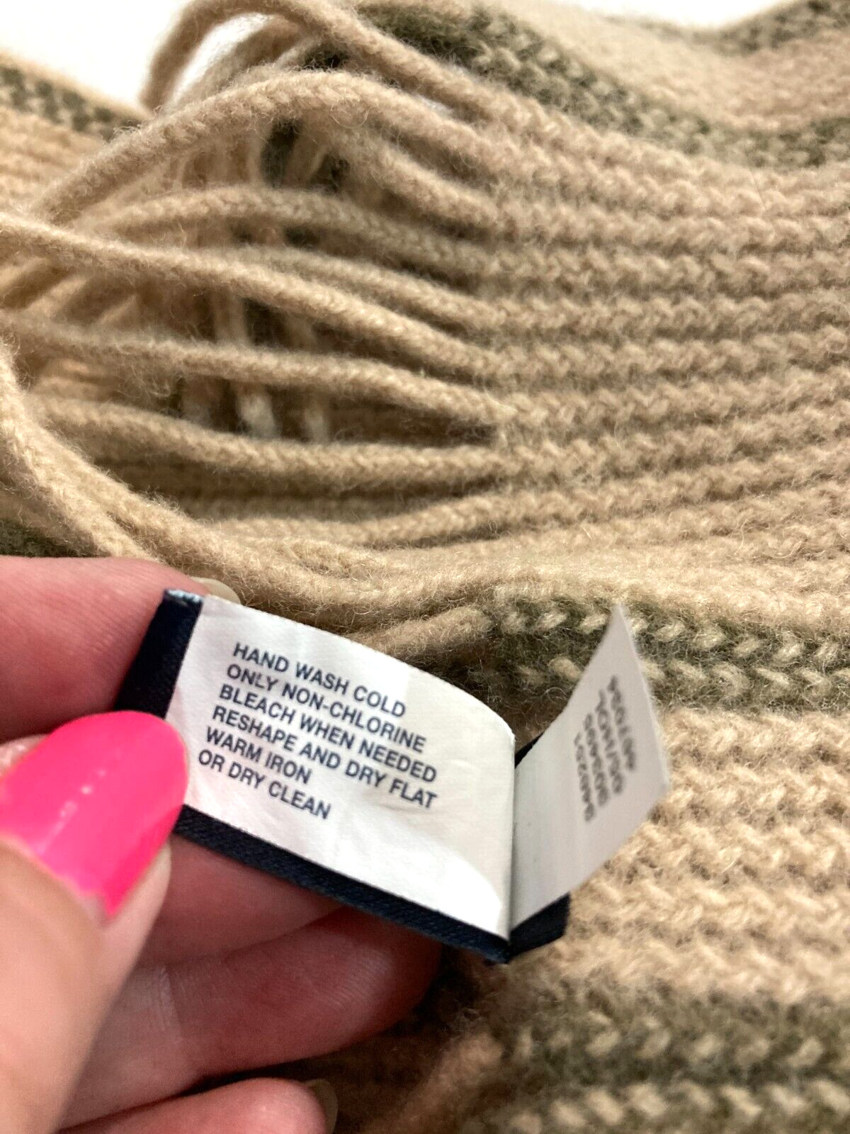 как выглядит Gap Scarf Knit Lambswool Blend Brown Striped Fringe 66"x7.5" фото