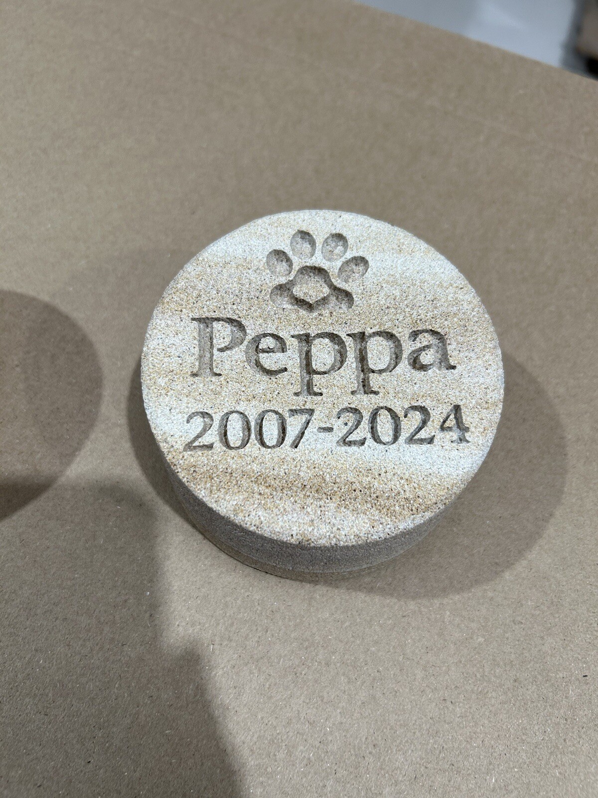 Memorial Keepsake for Pets Personalised Sand stone - 20 CHARACTERS