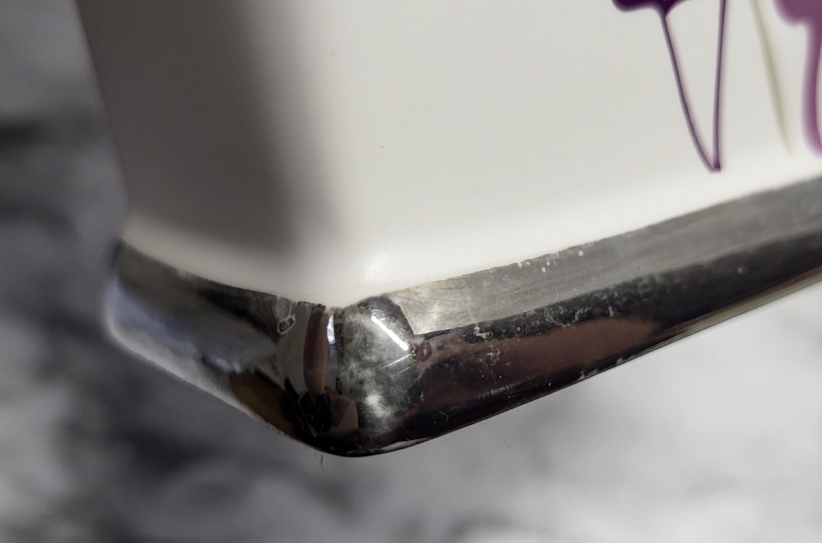 Toothbrush Holder. 4 Toothbrushes. Rectangle. Purple Flowers. Ceramic. Silver...