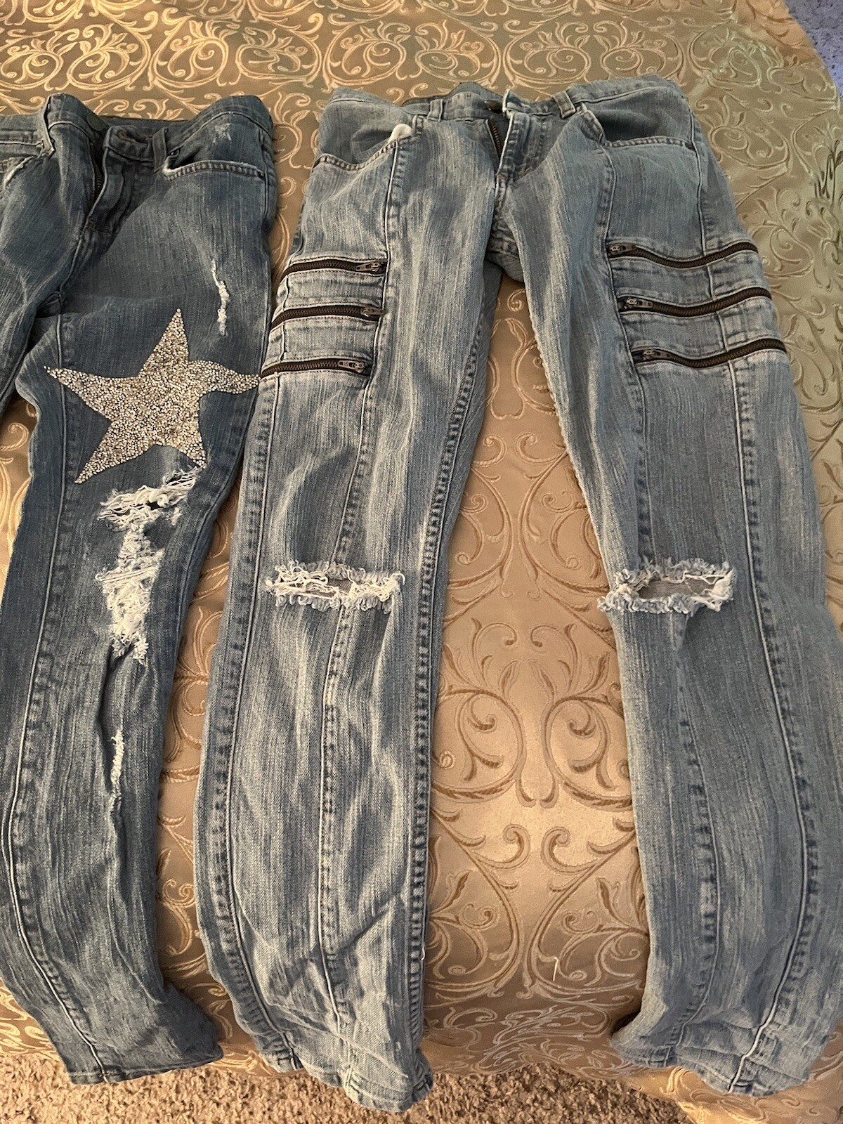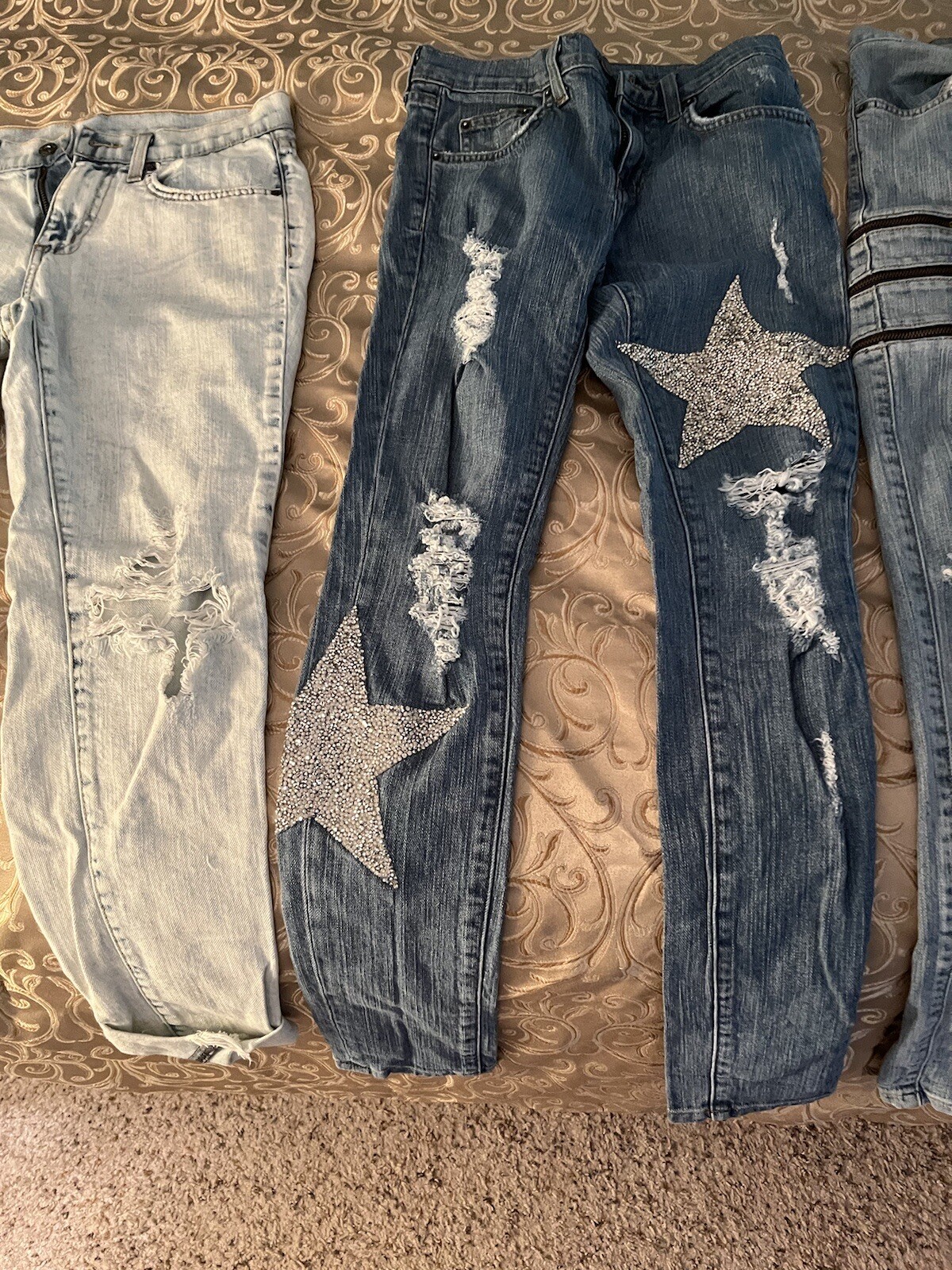 как выглядит 3 Pair Of Carmar Jeans. 2 Are Size 25 And The Acid Wash Jeans Are 26. Distressed фото