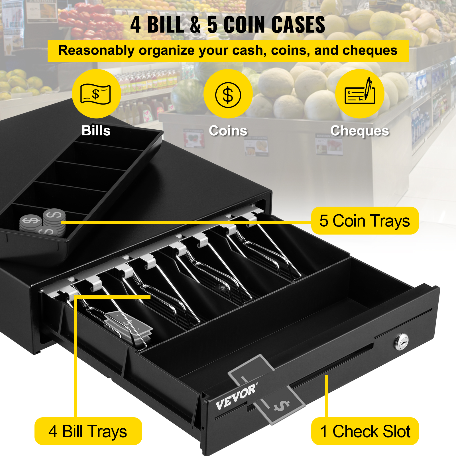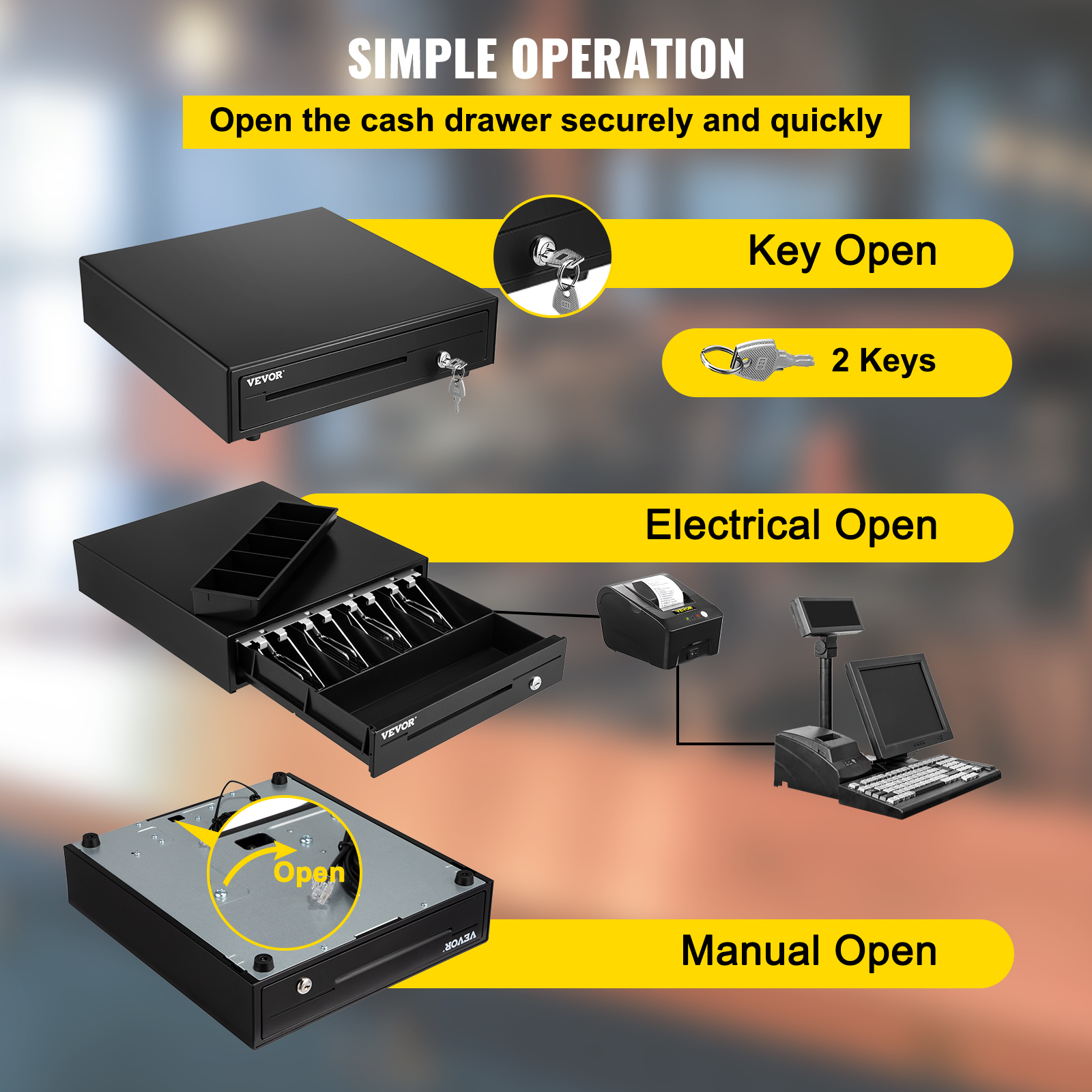 Cash Drawer 13/16in Cash Register POS System 3 Unlocking Ways RJ11/12