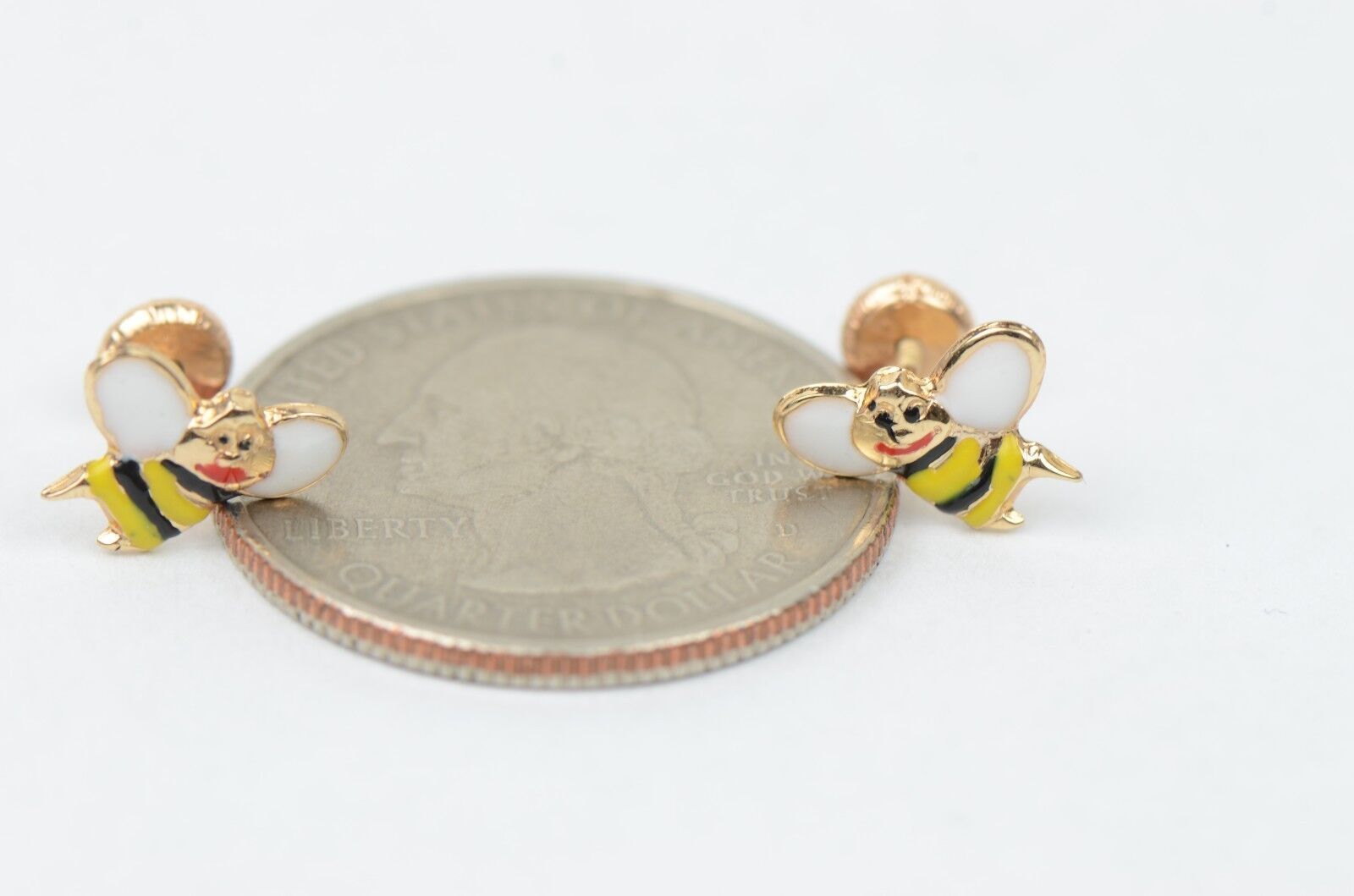 14k Yellow Gold Baby Beautiful Enamel Bee earrings with Screw Back