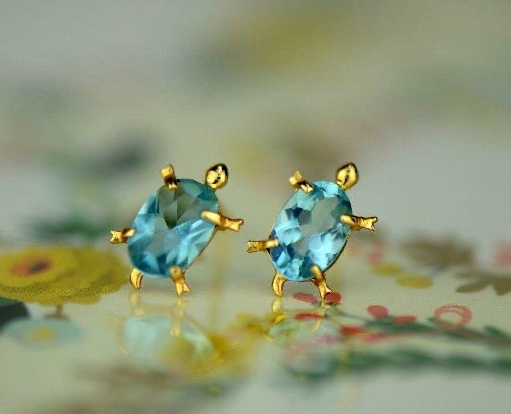 как выглядит 14k Yellow Gold Turtle Birthstone Stud Earring фото