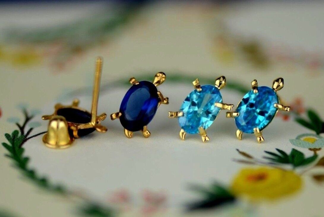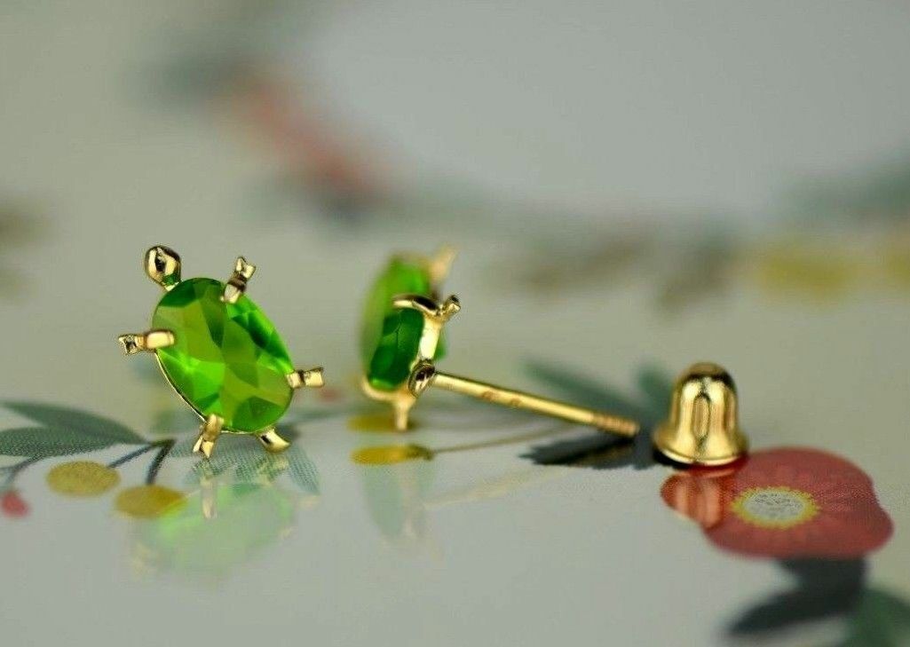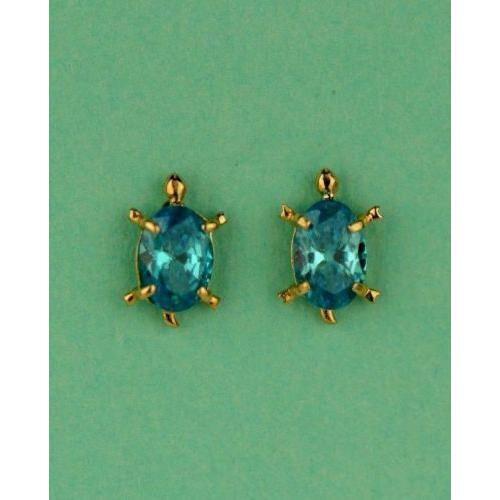 14k Yellow Gold Turtle Birthstone Stud Earring