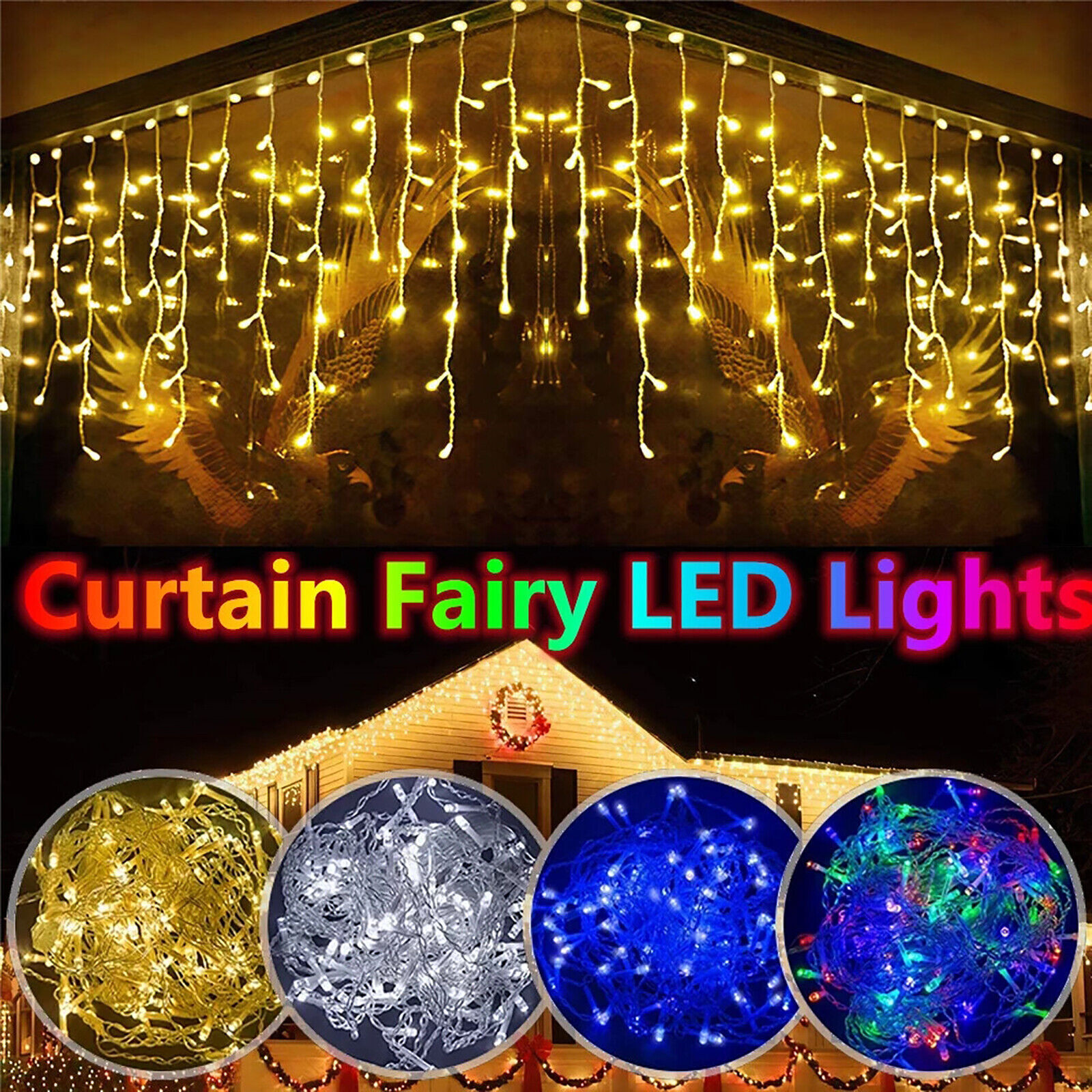 96 LED Hanging Icicle Curtain Lights Garden Xmas US String Wedding Lamp
