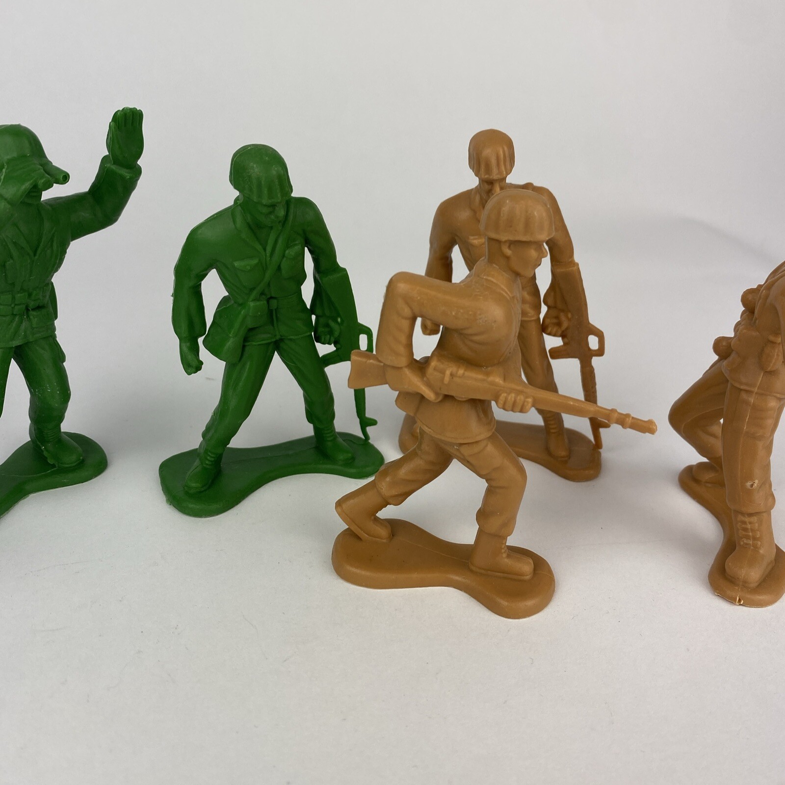 Greenbrier International 4 Plastic Army Men Toy Soldiers Green Tan Lot Of 6