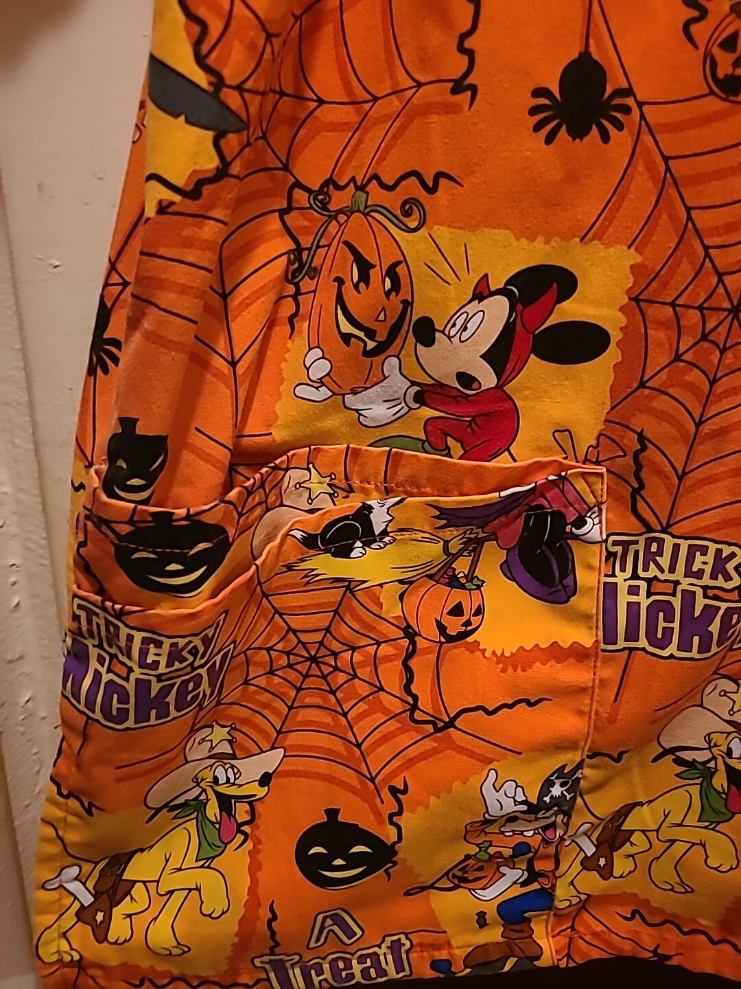 Tricky Mickey Witchy Minnie Mouse Halloween Disney Womens Scrub Top Orange