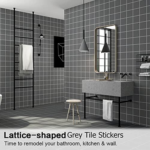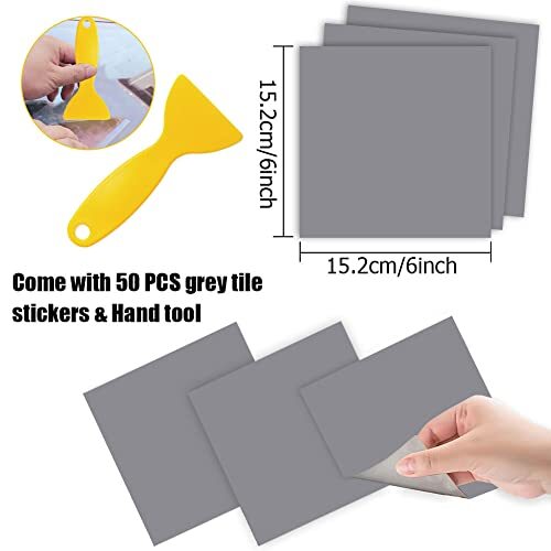 Tile Stickers, 50pcs Peel and Stick Tile Stickers Self Adhesive 6'' x 6'' Grey