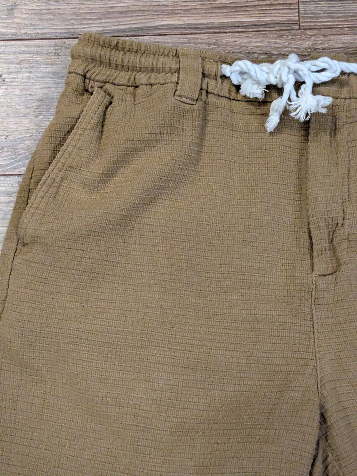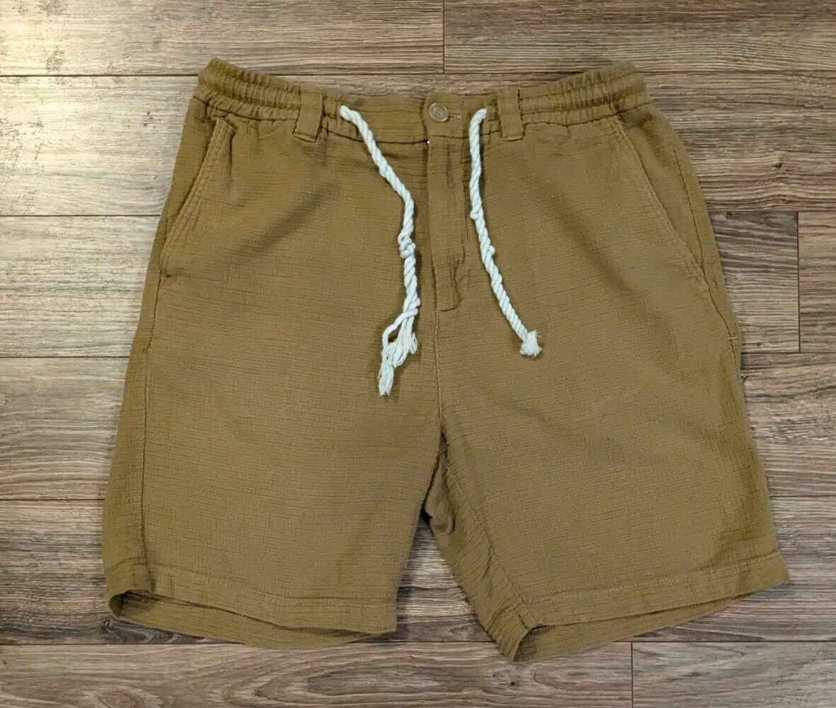 Zara Drawstring 7 Shorts Mens Mustard Yellow Waffle Knit - 31