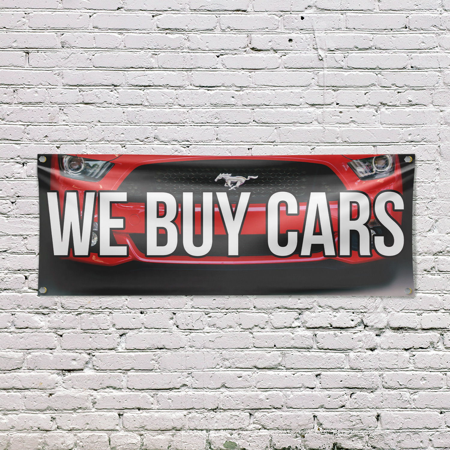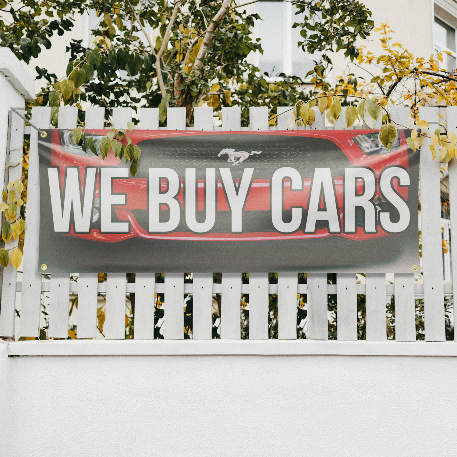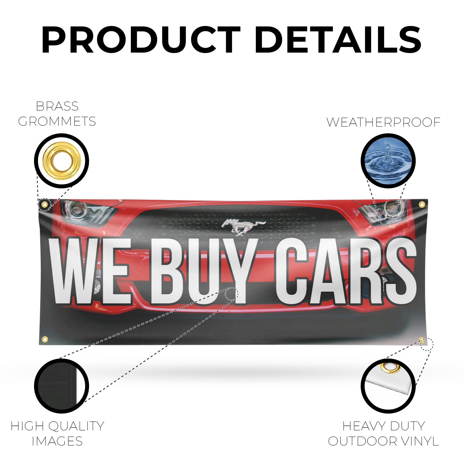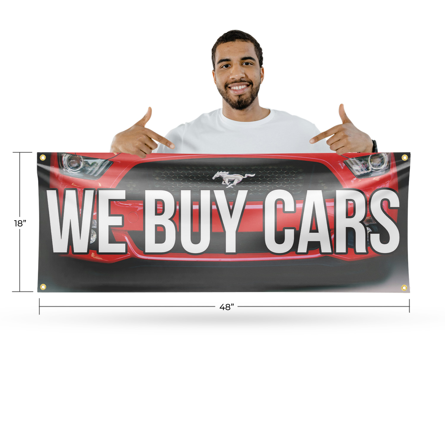 We Buy Cars 13 oz Vinyl Banner Sign with Metal Grommets Heavy-Duty Single-Sided