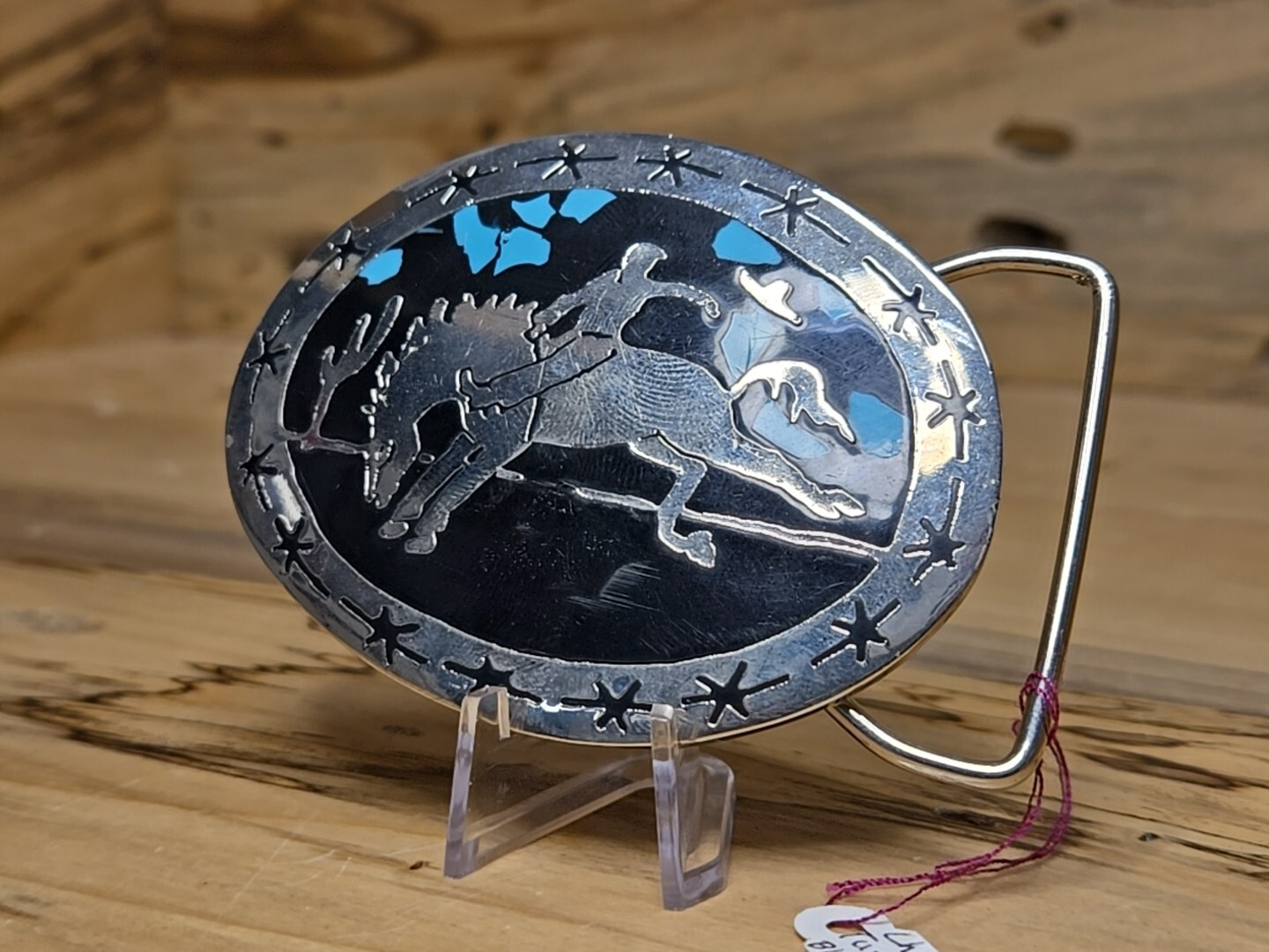 как выглядит Bucking Bronco Belt Buckle Turquoise Inlay With Black Enamel G778 фото