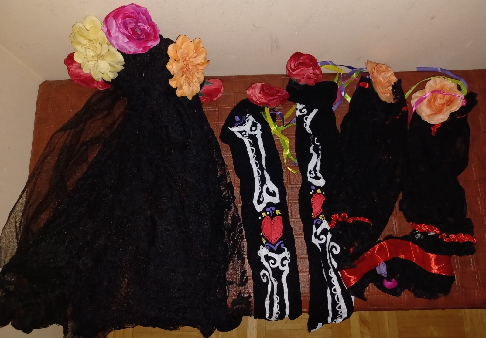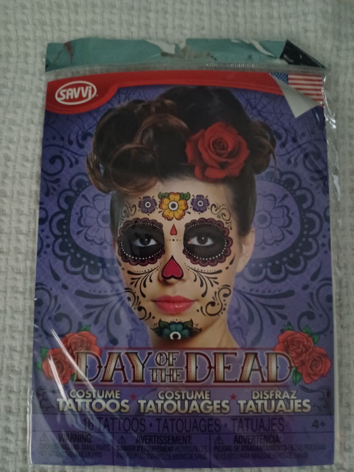 Day of the dead costume. Size: adult large, fit 8-10. Out of package-never used.