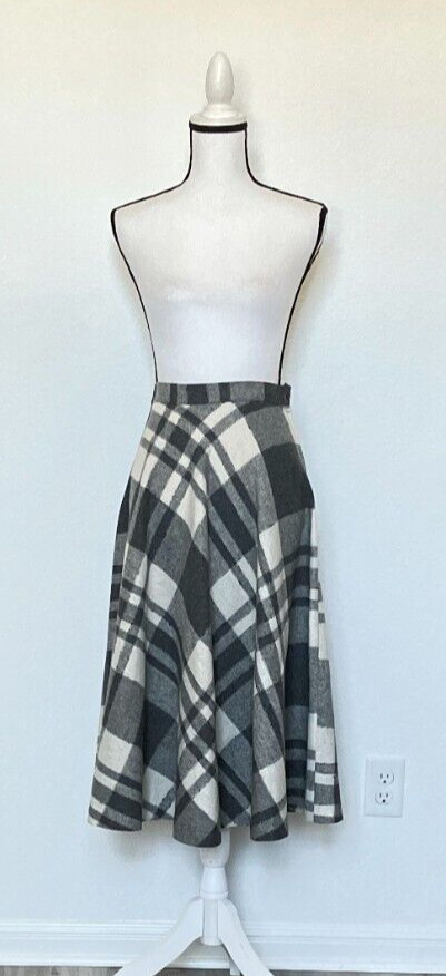 как выглядит 1960s Wool Plaid Midi Skirt фото