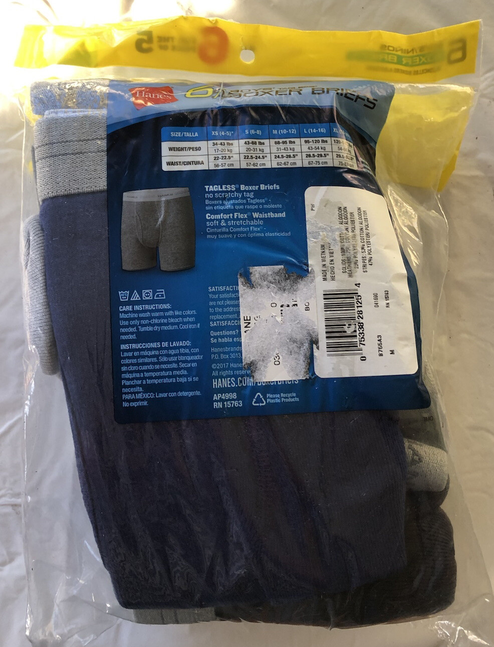 Hanes Boys Tagless Boxer Briefs 6 Pairs Assorted Large 14/16 New