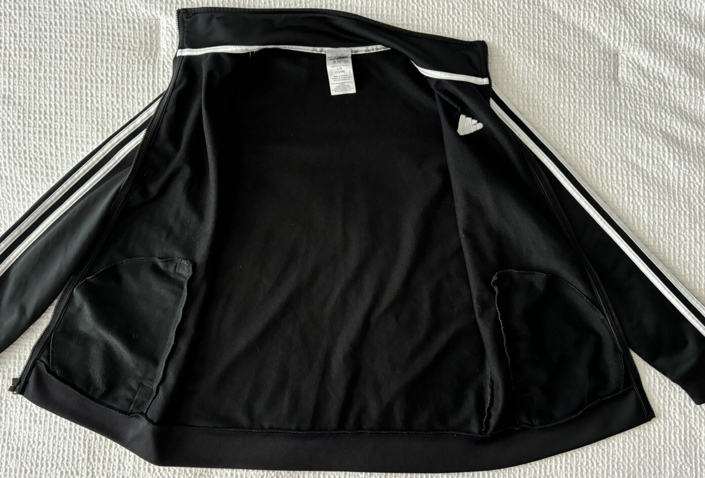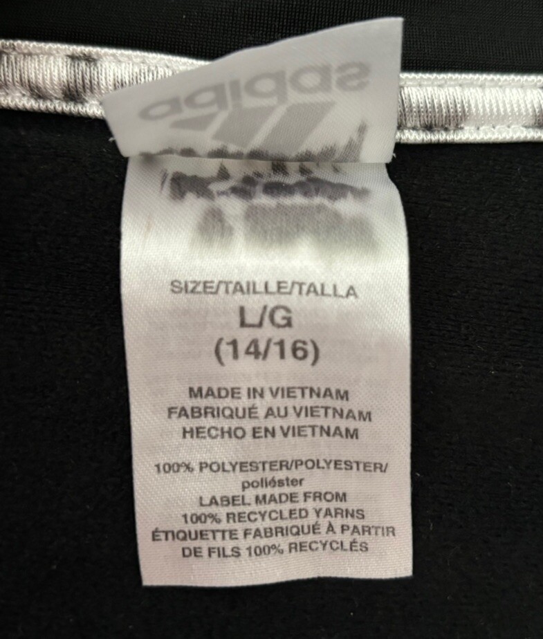 ADIDAS Boys Youth Large 14/16 Full Zip Track Jacket Sweatshirt Black White EUC