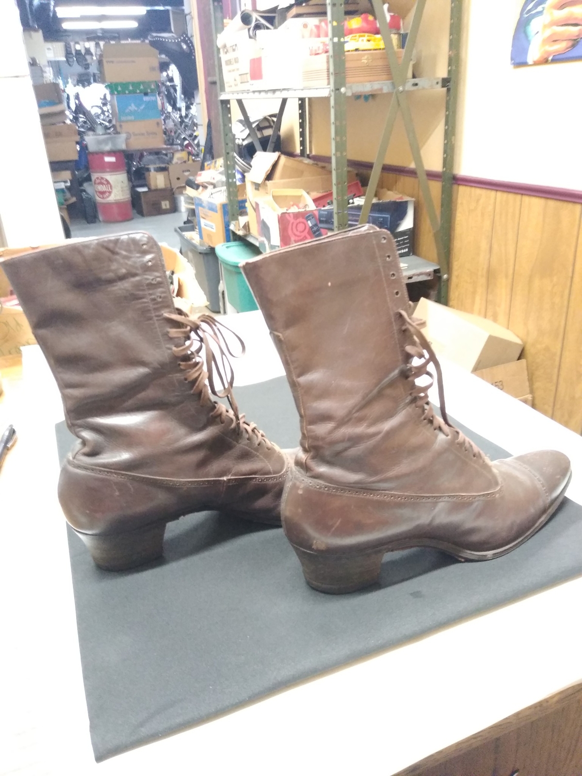 Antique 1900s Victorian Ladies Lace Up Leather High Top Shoes Boots Vtg Clothing
