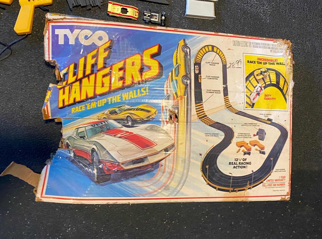 TYCO Cliff Hangers Race Car Set Electric Slot Up The Walls missing Cars