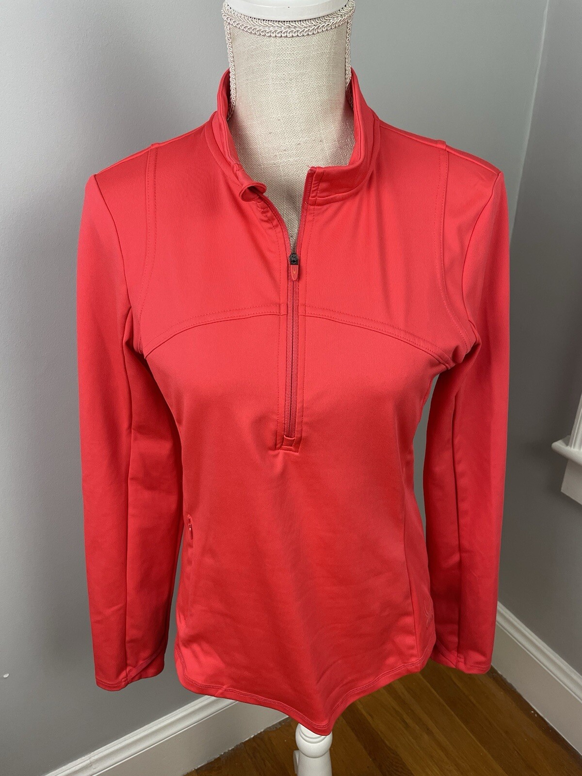 как выглядит Spyder Active SP820 Bright Coral 1/2 Zip Pullover Womens Size Medium фото