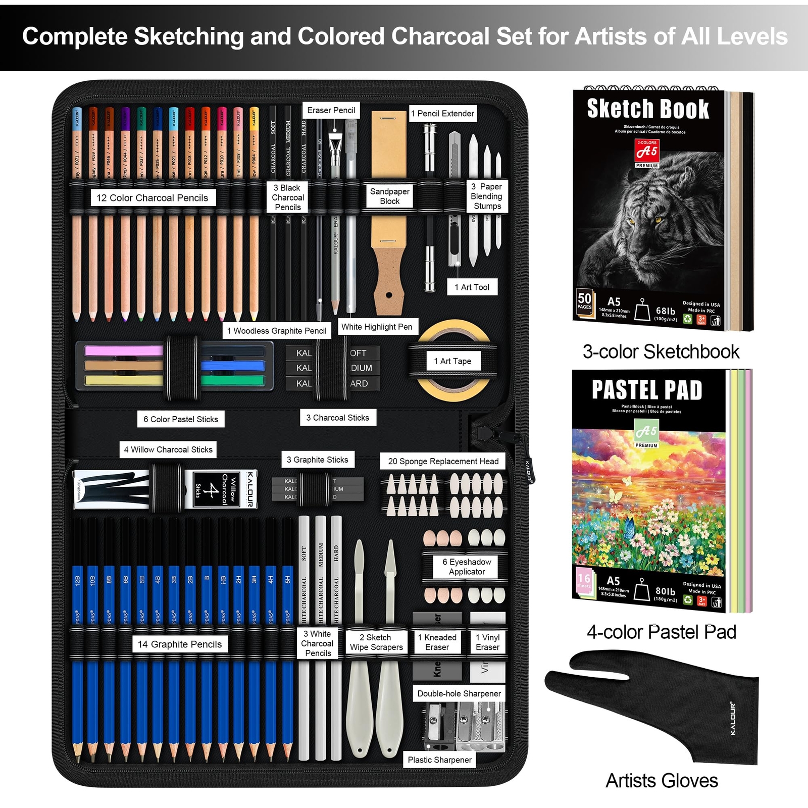95-Piece Sketching and Drawing Art Set with 3-color Sketch Book and Pastel Pa...