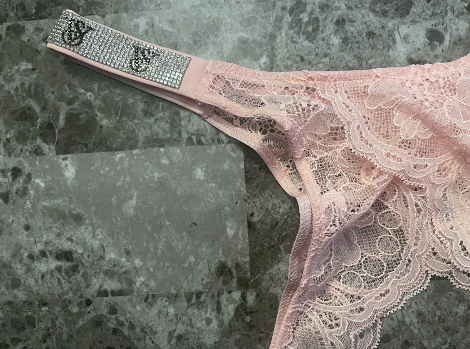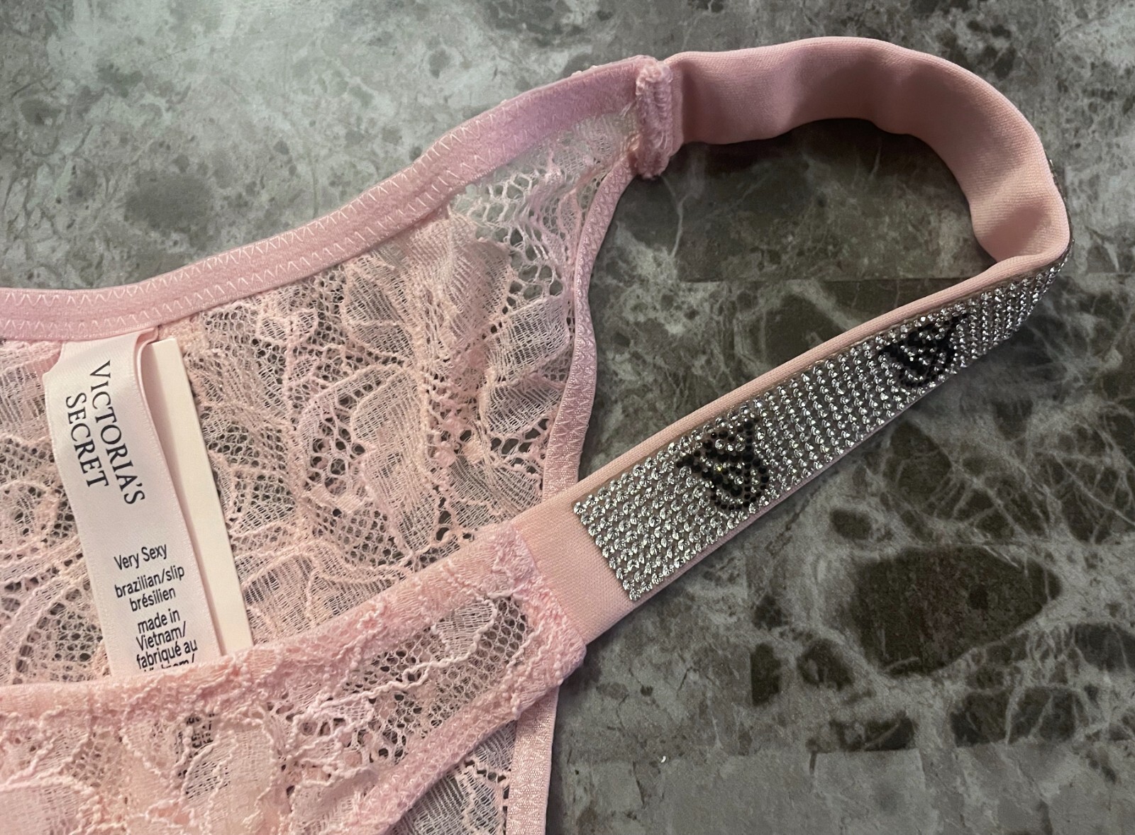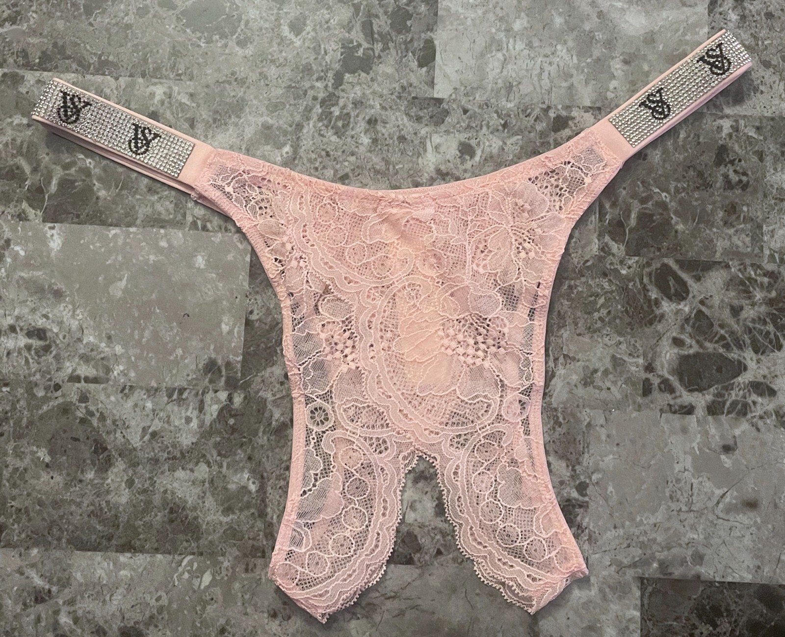как выглядит NWT VICTORIAS SECRET PINK SHINE STRAP LACE CROTCHLESS BRAZILIAN CHEEKY PANTIES фото