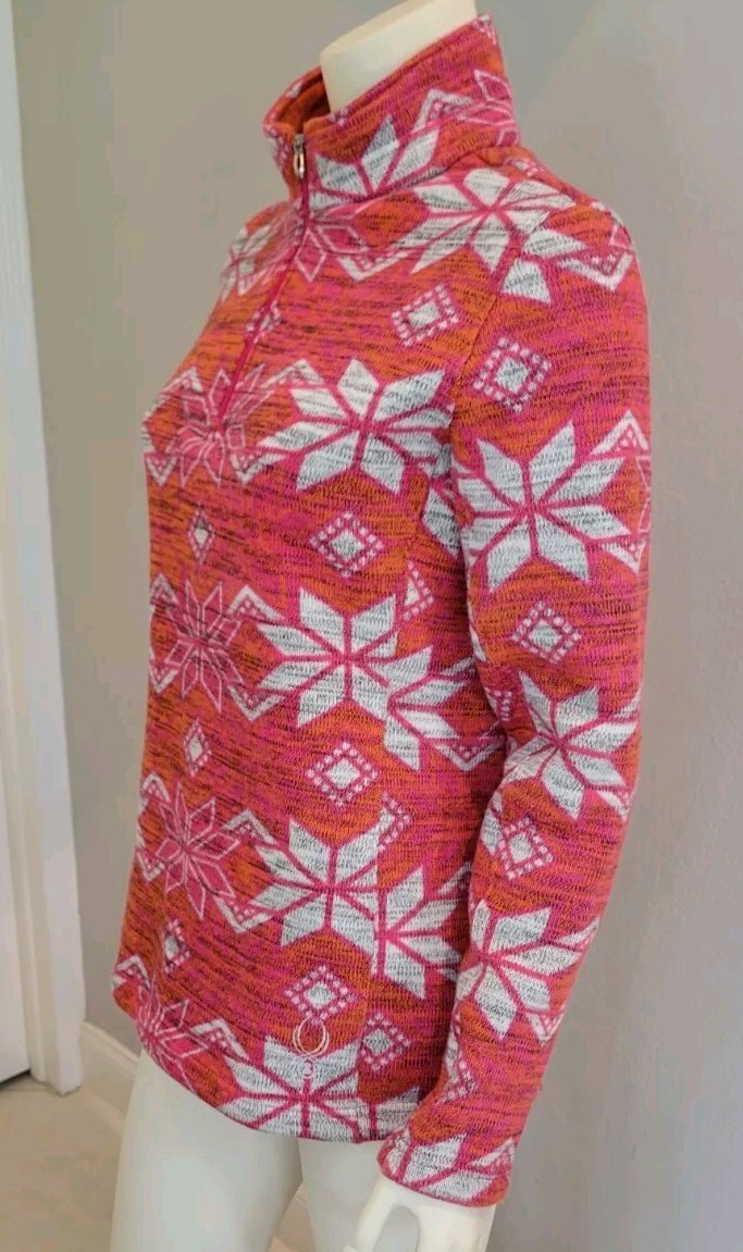 как выглядит Spyder Alpine Chic Pink Orange White 1/4 Zip Fleece Lined Sweater Womens 12 EUC фото